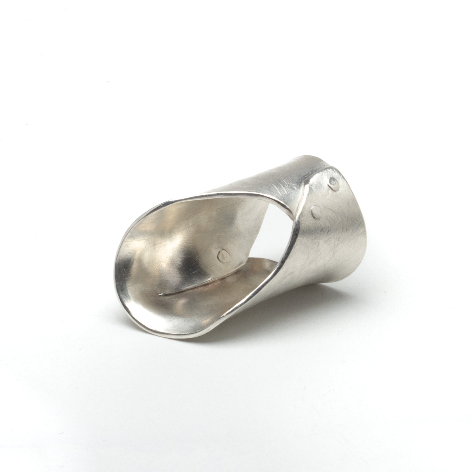 Artist Statement: The Ambassador Band is an anticlastic ring form and abstract representation of the last male Northern White Rhino, Sudan. Sudan died in Kenya in 2018 at the age of 45. He left behind one daughter, Najin, and one granddaughter, Fatu, to live out their remaining days in functional extinction. The loss was both profound and heartbreaking.