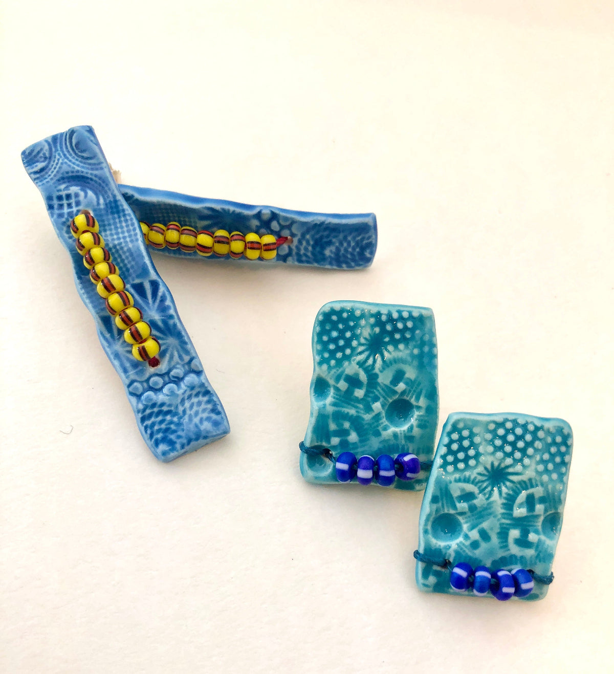 • Materials: Ceramic, Sterling silver Post, Glass Beads