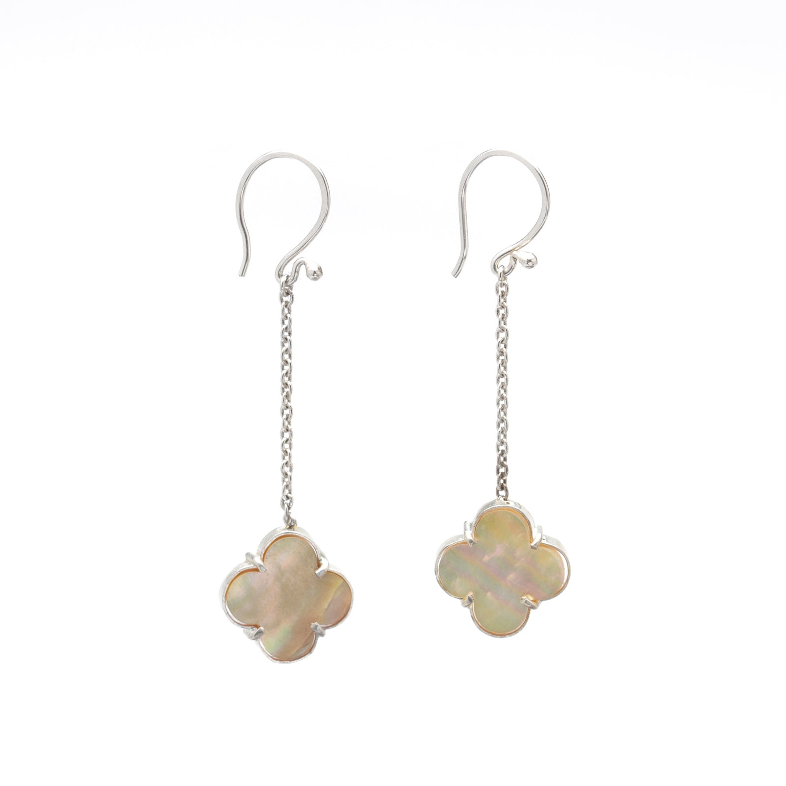 Delicate flower-shaped mother of pearl drops that move fluidly with every gesture, creating an elegant, understated statement.