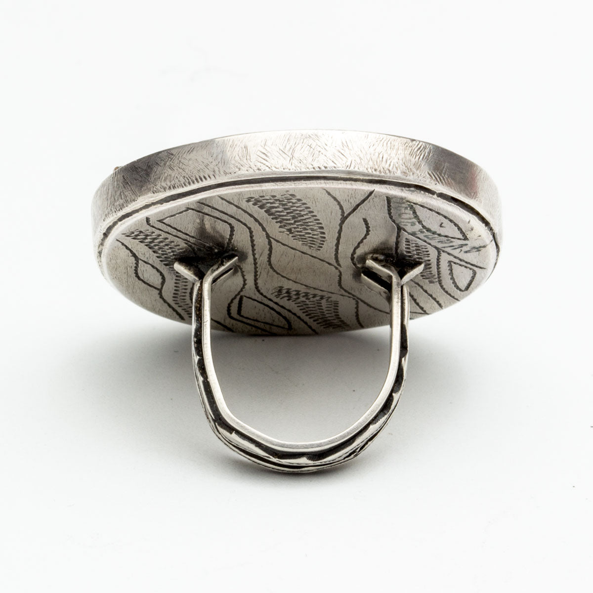 I’m Julianne, a second-career, self-taught jewelry artist from rural, high desert, southwest Colorado. I’m most myself wandering the canyons and mountain forests where I live, or wherever I happen to be, and coaxing vegetables from my garden . The forms, textures and balanced asymmetry of the natural world inform my designs and are the heart of my inspiration. This particular ring is representative of the high, alpine lakes nestled between peaks near timberline in the mountain ranges – part of the greater Rocky Mountain Range- near me.