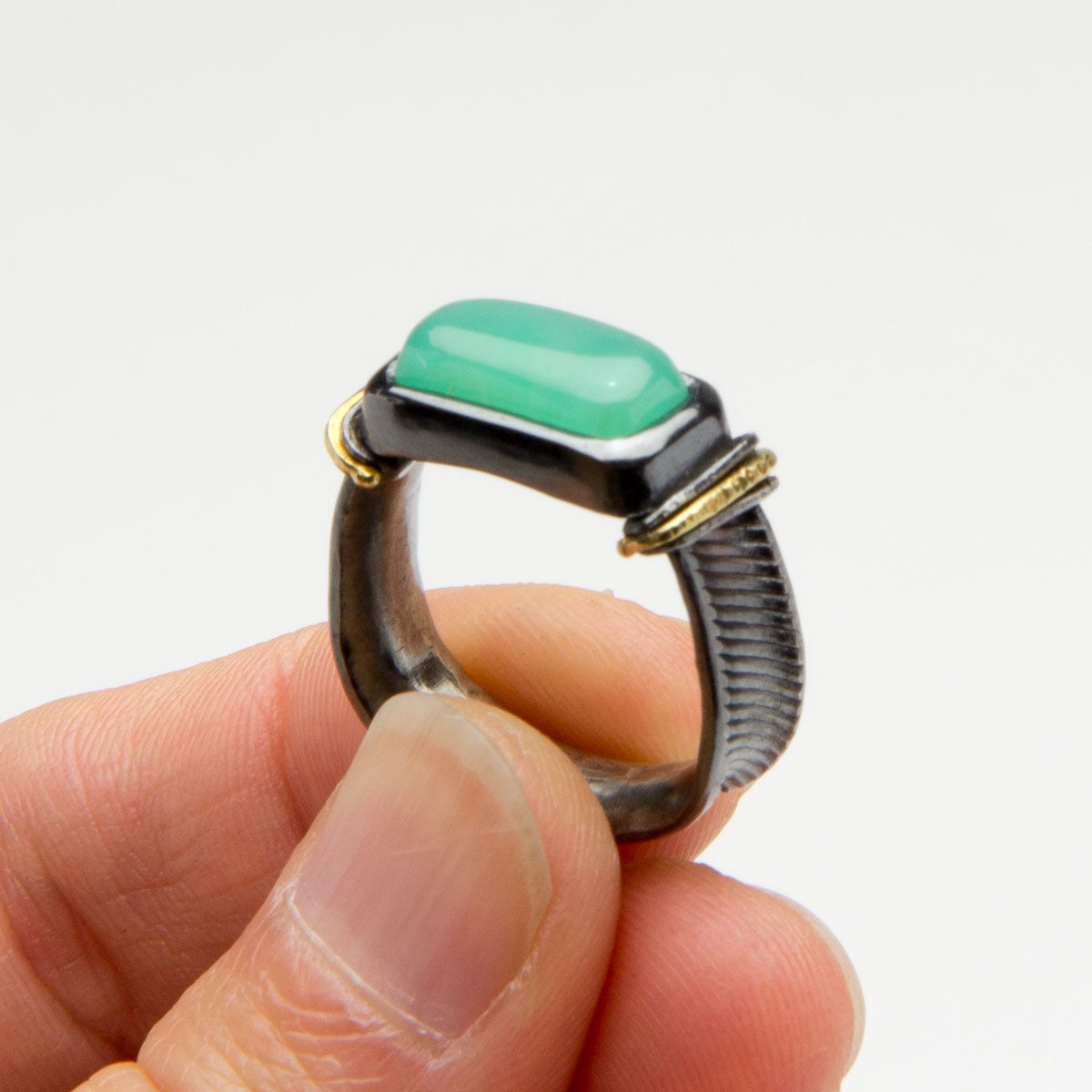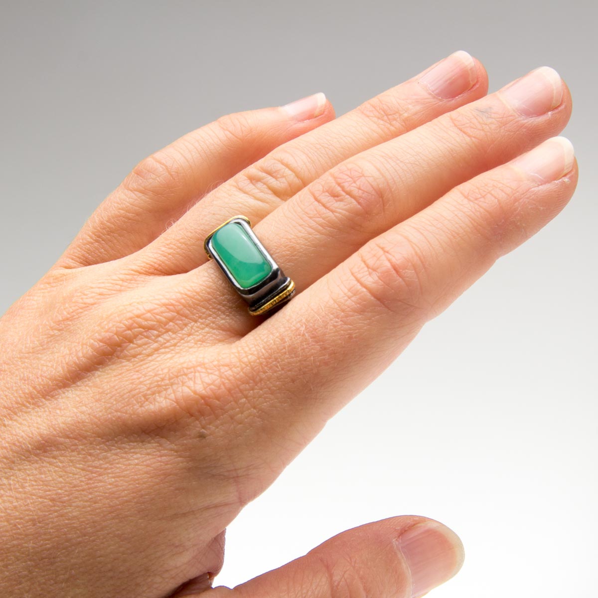 Materials: 18k gold, fine silver, Australian chrysoprase