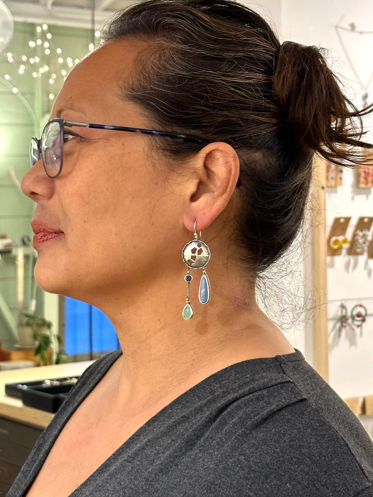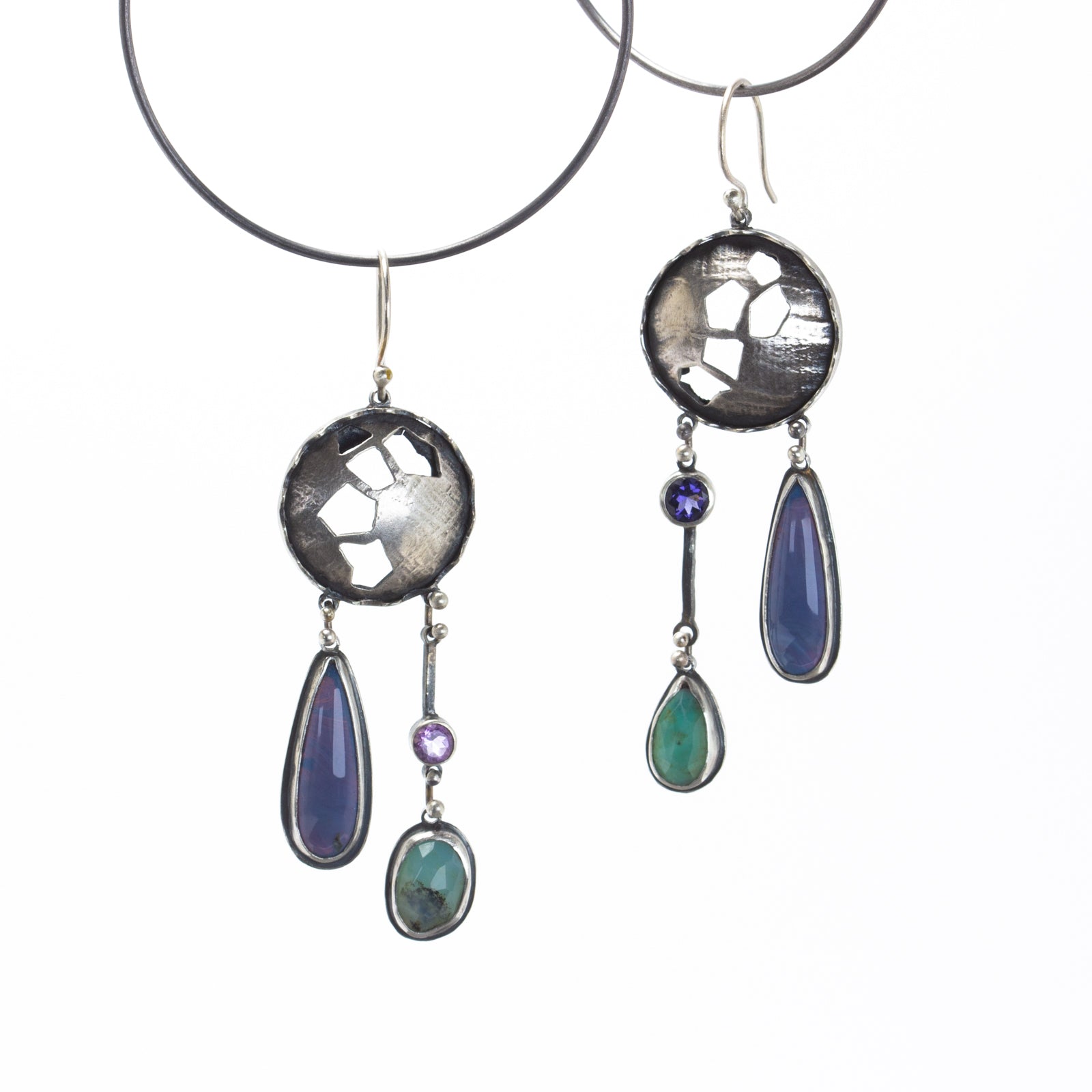 Materials: Leland Blue "stones", Peruvian Opal, Iolite, Amethyst, Recycled Sterling Silver, Sterling Silver