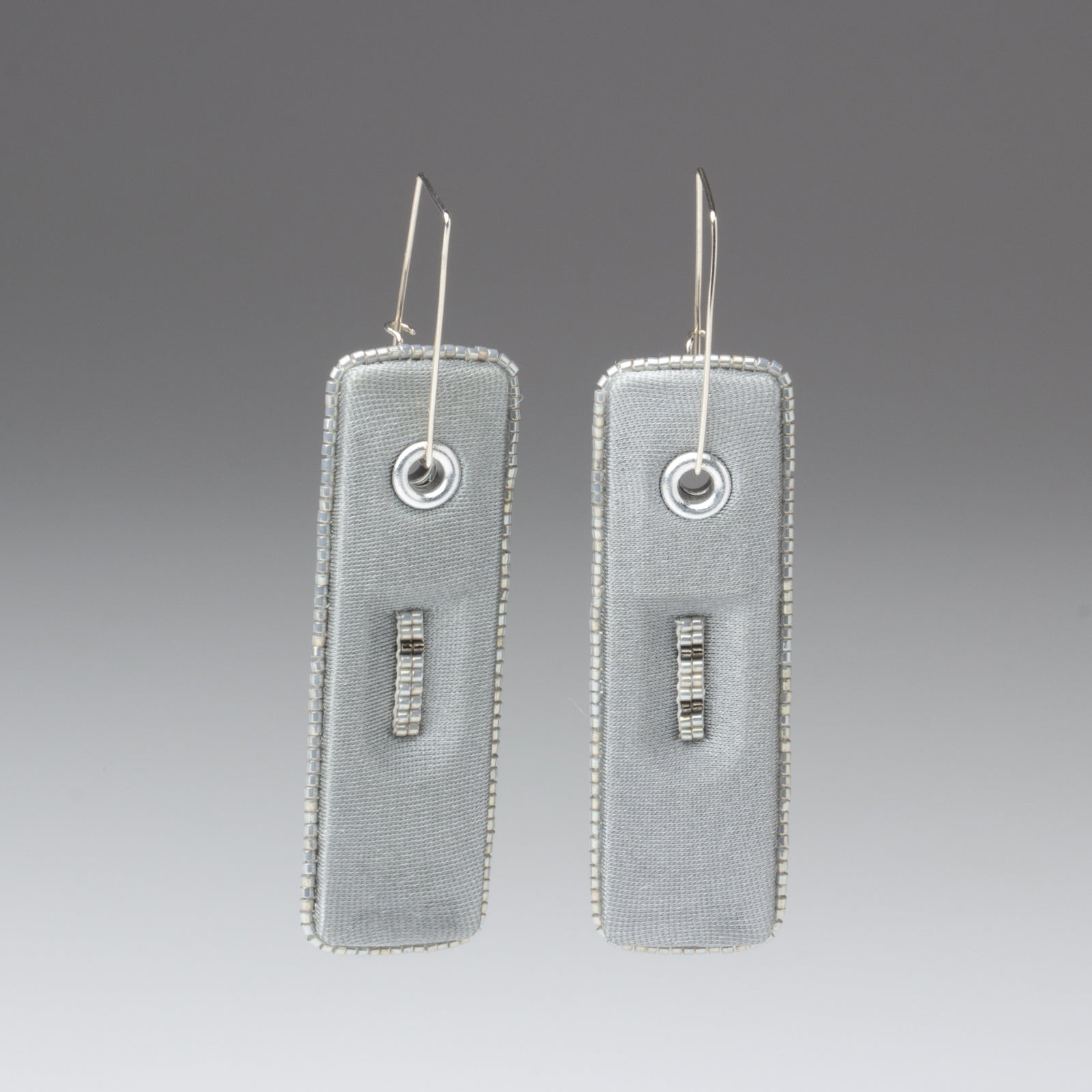 onto the earrings. Next, additional beads circumscribe the oblong forms,