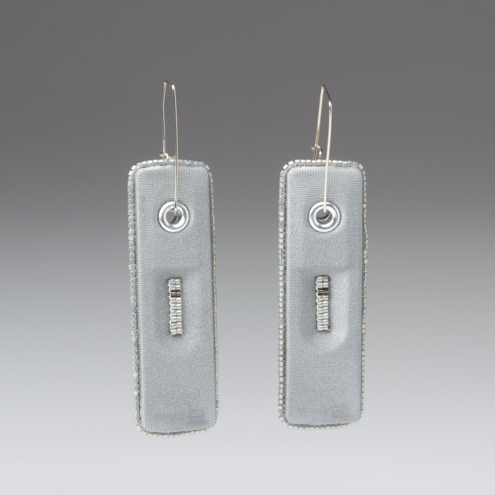 onto the earrings. Next, additional beads circumscribe the oblong forms,
