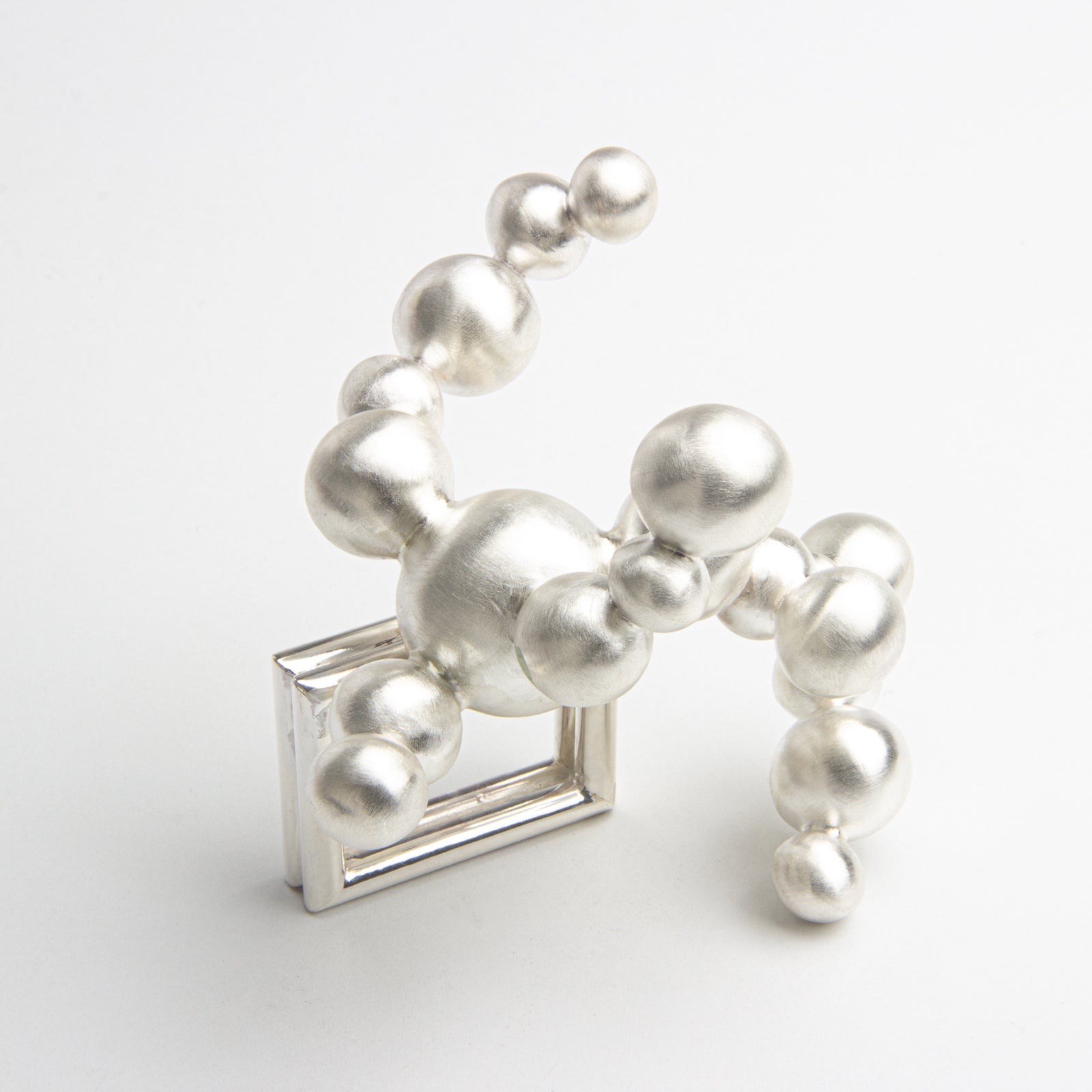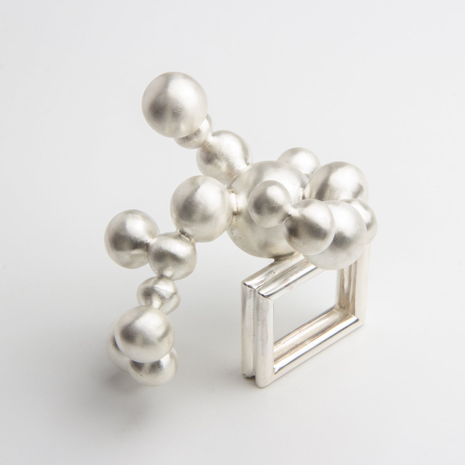 Artist Bio: Jiro Masuda attended the University of Houston where he received a BFA in Jewelry and Metalsmithing. He spent one year at Temple University’s Tyler School of Art in Philadelphia and then moved to Michigan to attend the Cranbrook Academy of Art, where he received his Masters of Fine Arts in Metalsmithing. Teaching Jewelry and Metalsmithing has been his driving passion for the past 30 plus years. Jiro has taught at numerous institutions including; the University of Houston, Temple University, Wayne State University, the University of Michigan, and Dartmouth College. Jiro is currently the Jewelry and Metalsmithing Instructor and Upper School Department Chair for Visual and Performing Arts at Detroit Country Day School in Beverly Hills, Michigan where he is also an alumnus. The industrial aesthetic and culture of the automobile and machining industry of Detroit have strongly influenced Jiro’s art. His work spans the range from jewelry to silverware and from small functional objects to ceremonial structures. He has worked in a variety of materials including copper, brass, bronze, aluminum, silver, gold, platinum, steel, titanium, stainless steel, nickel, plastics, and wood. His creativity and irreverent attitude toward materials and found objects can be summarized with a sentiment by an art historian: “artists are like children, and their joy comes from playing with their materials.” Jiro’s work has been widely exhibited nationally and has been included in three issues of Metalsmith Magazine. His pieces have been collected by several individuals as well as the National Building Museum in Washington D.C. where one of his pieces is part of the exhibit, “The Hechinger Collection: Tools as Art.”