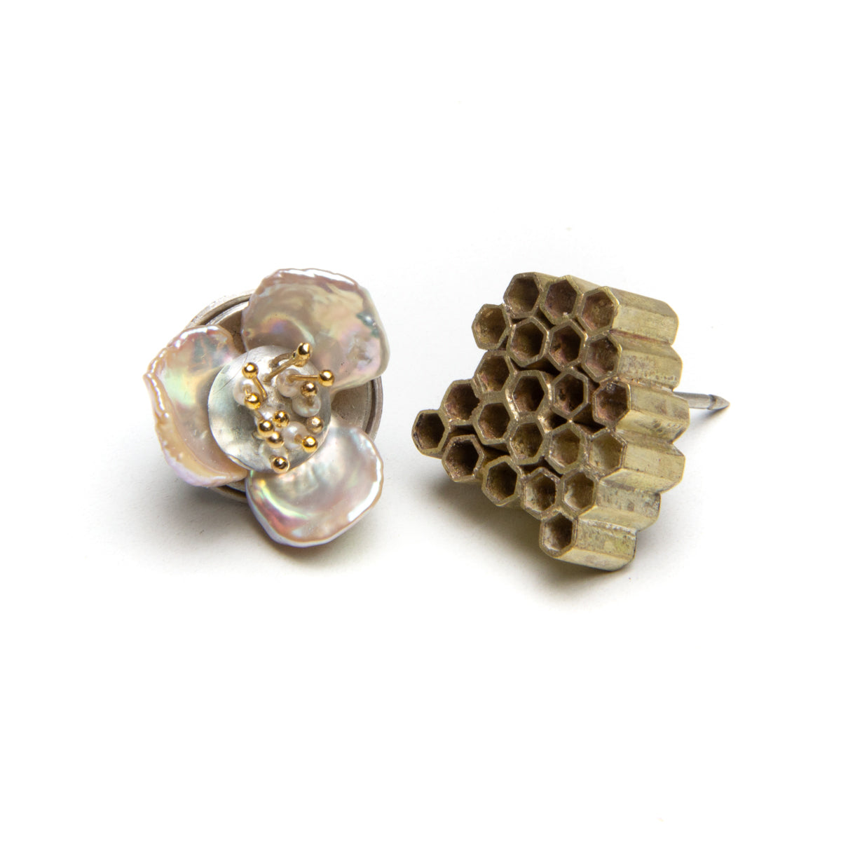 Materials: copper, brass, sterling silver, mica, paper, plastic, 22k gold-fill, keshi pearls, seed pearls