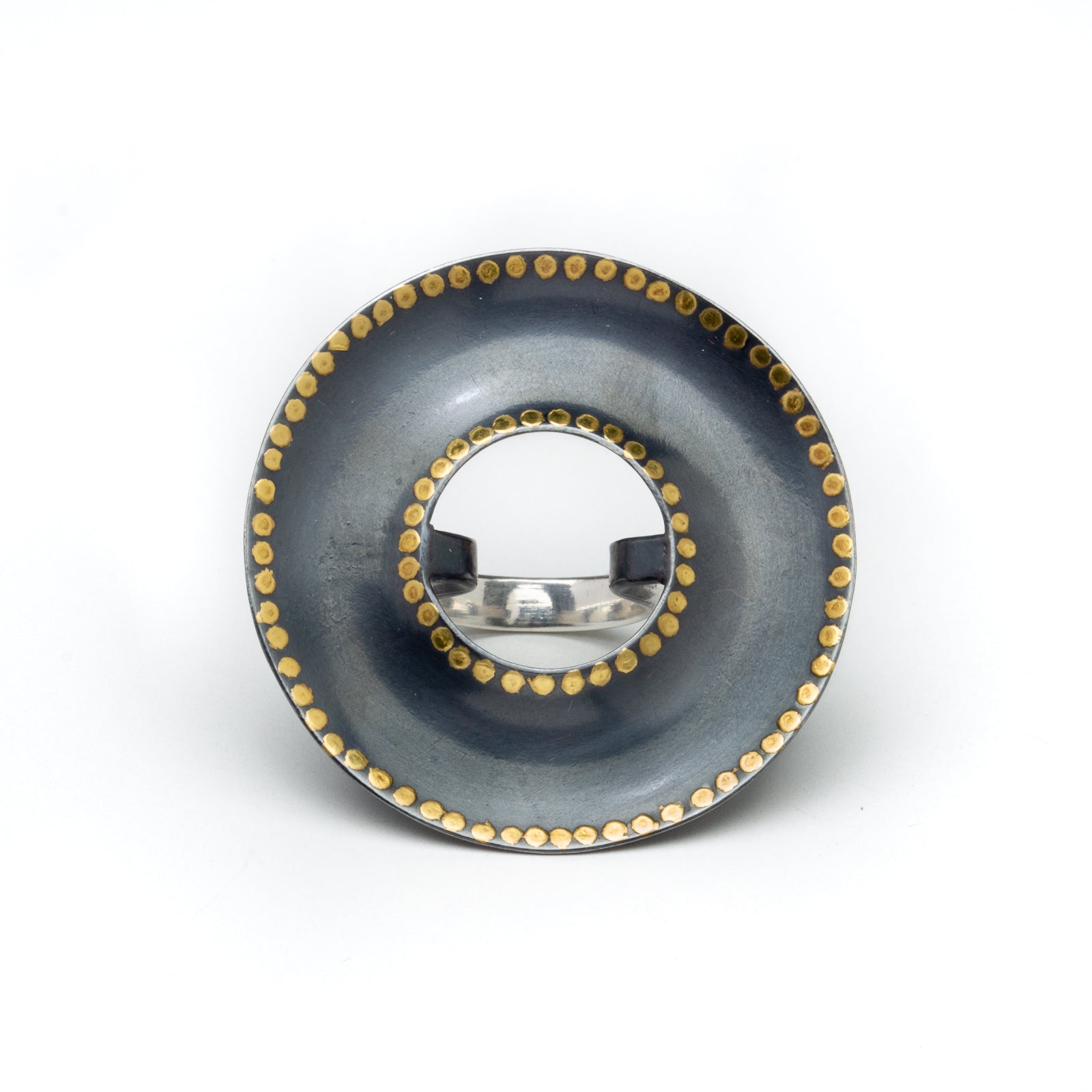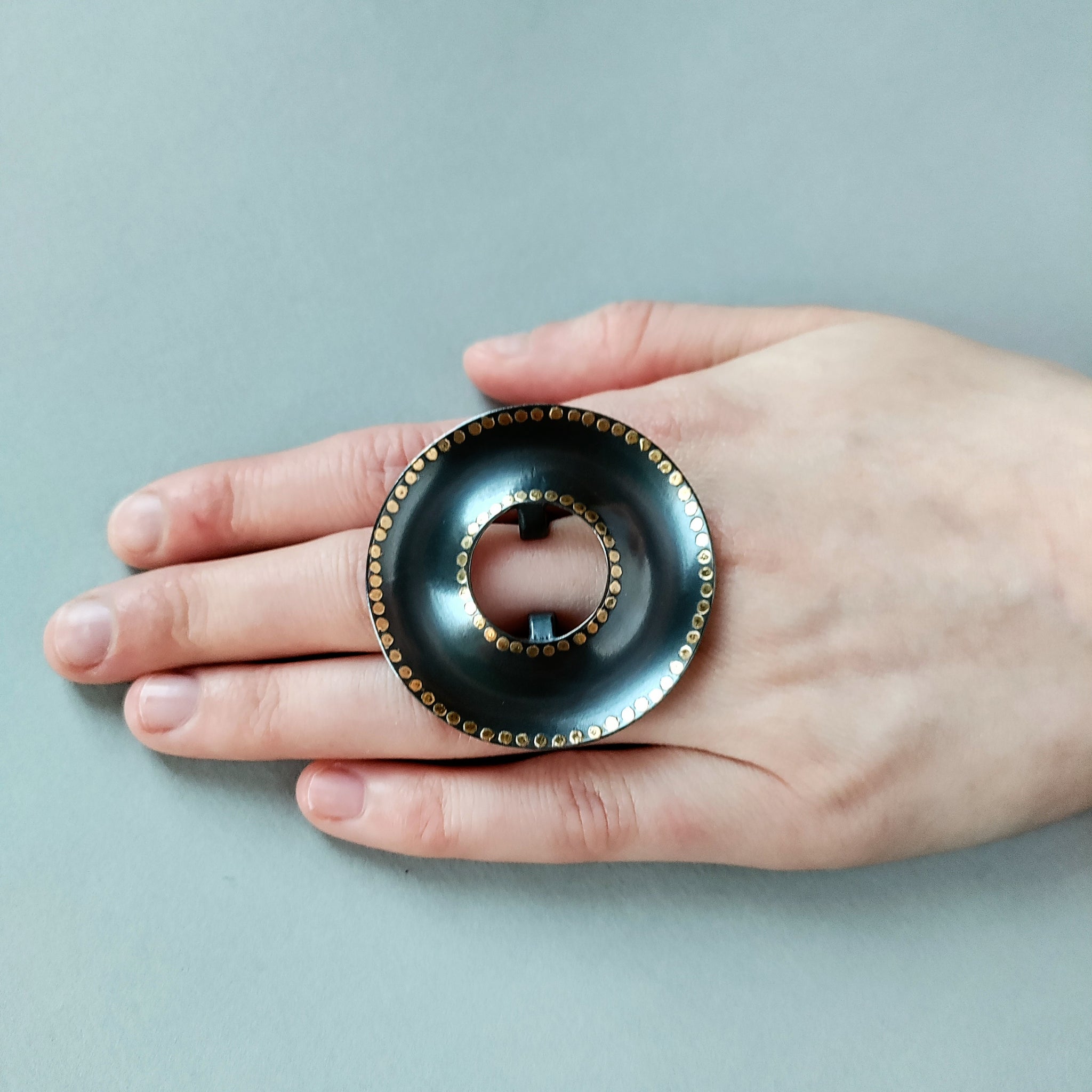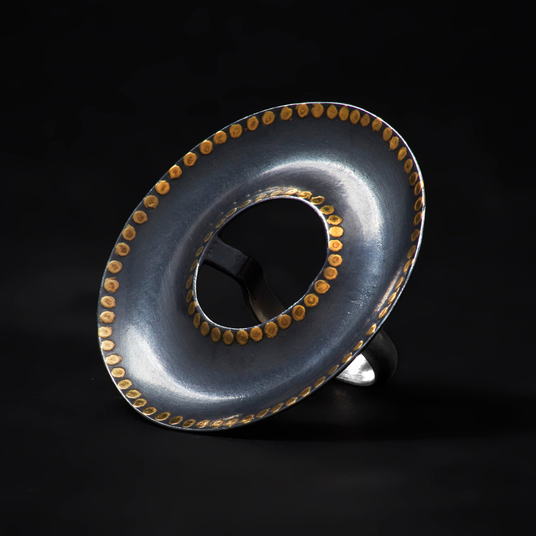 Artist Bio: Isabella Bedlington is an award-winning jeweler. She graduated from The Glasgow School of Art with a first-class silversmithing and jewelry BA in 2023. Using traditional decorative techniques such as Keum boo and granulation, her recent collection delves deeply into the significance of the afterlife in our earthly existence, utilizing the torus as her recurring motif.