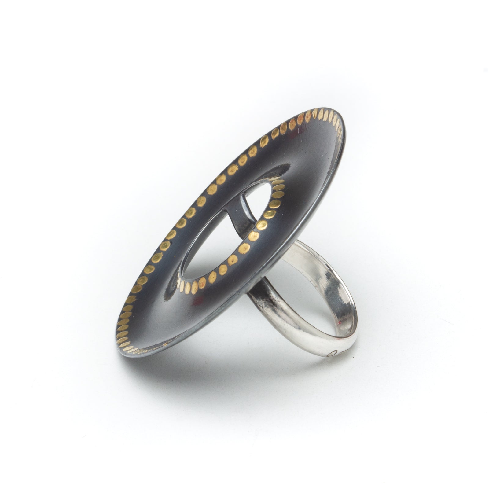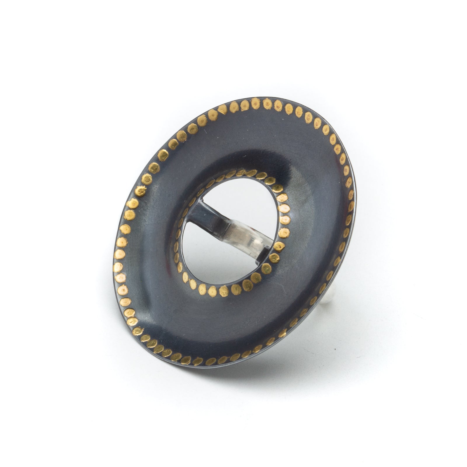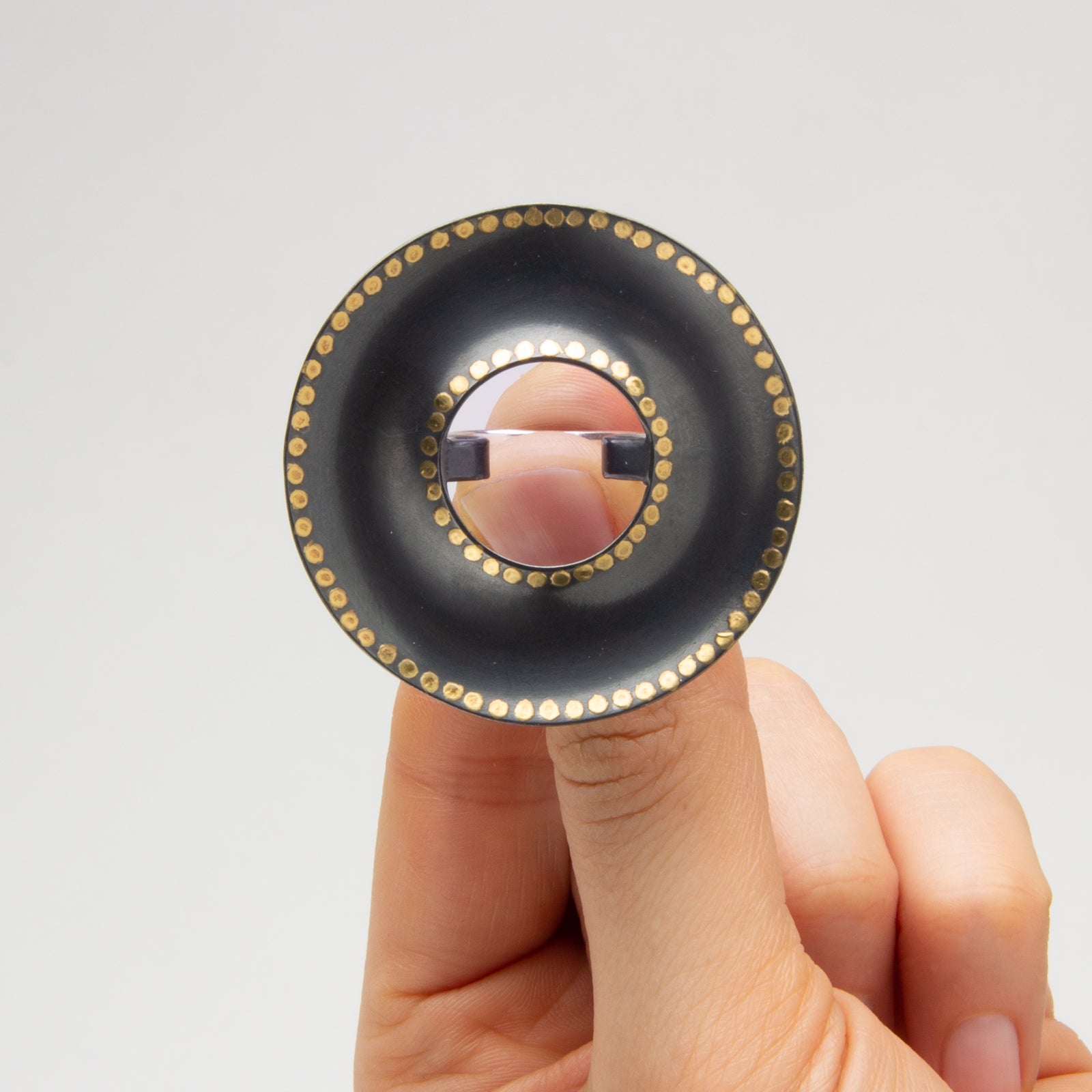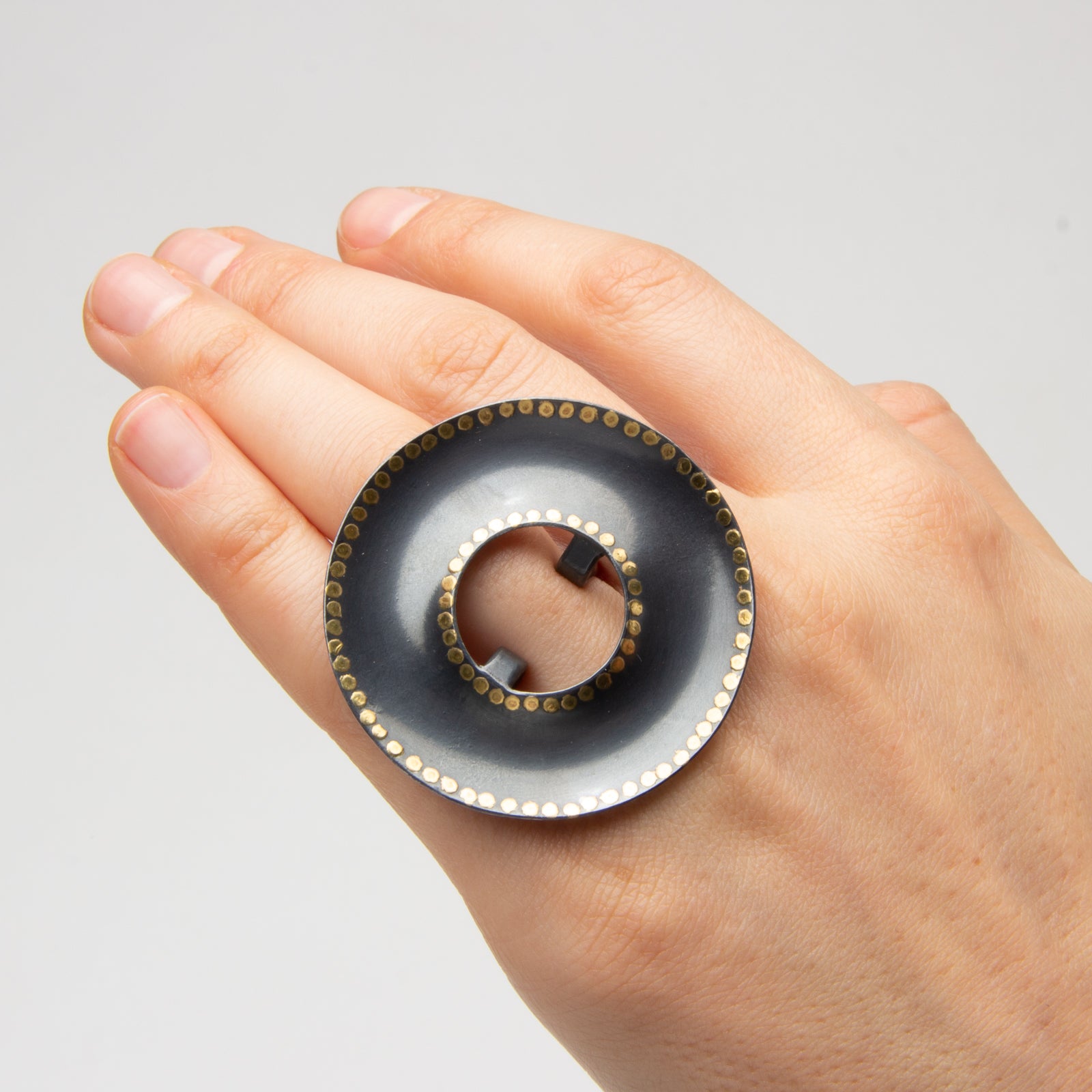 Artist Bio: Isabella Bedlington is an award-winning jeweler. She graduated from The Glasgow School of Art with a first-class silversmithing and jewelry BA in 2023. Using traditional decorative techniques such as Keum boo and granulation, her recent collection delves deeply into the significance of the afterlife in our earthly existence, utilizing the torus as her recurring motif.