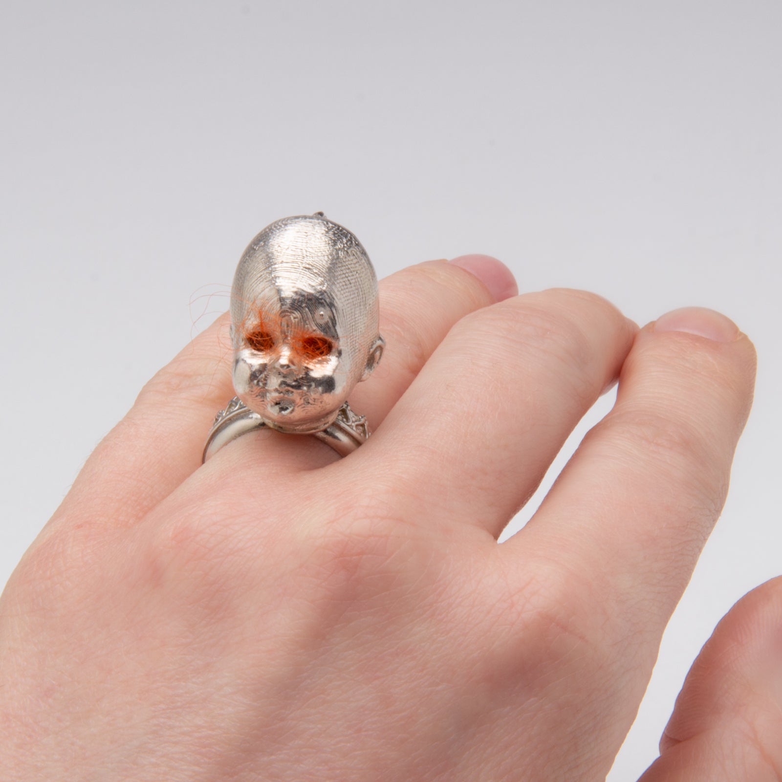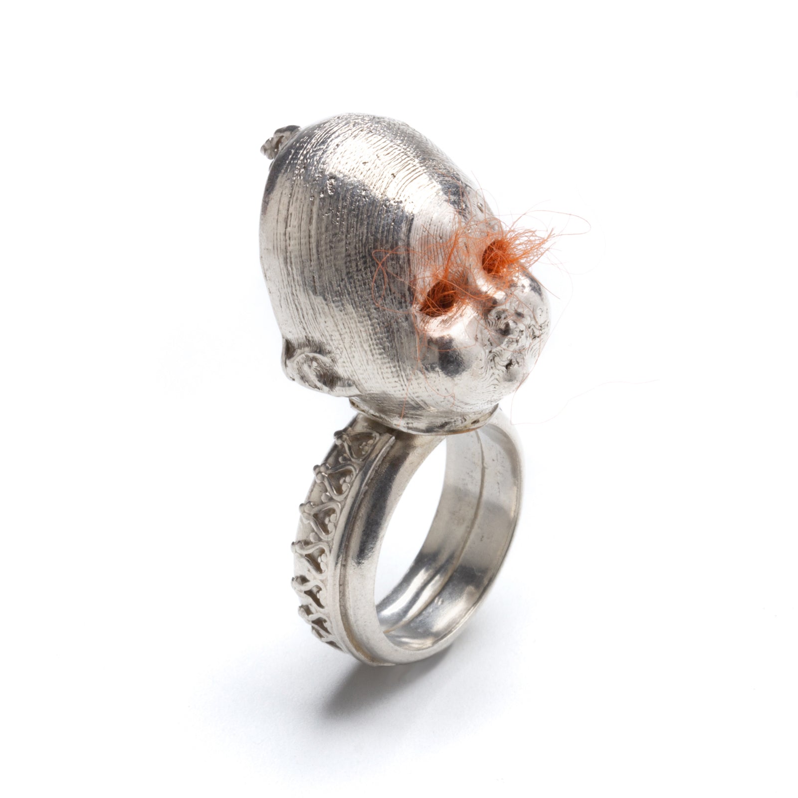 Artist Statement: Uma Ring represents a new adventure mainly joy, enthusiasm and fun. A new way of seeing the world, the color orange marks this transition, relating it to sociability, originality and extraversion or discretion when combined with the gray color of metal.