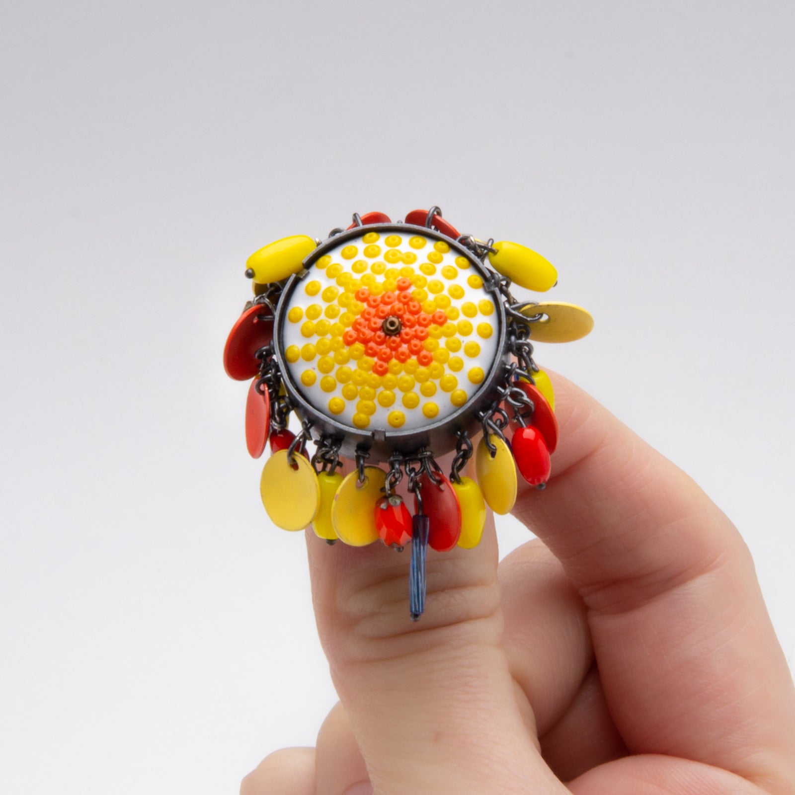 Materials: sterling silver, vitreous enamel, glass beads, acrylic enamel