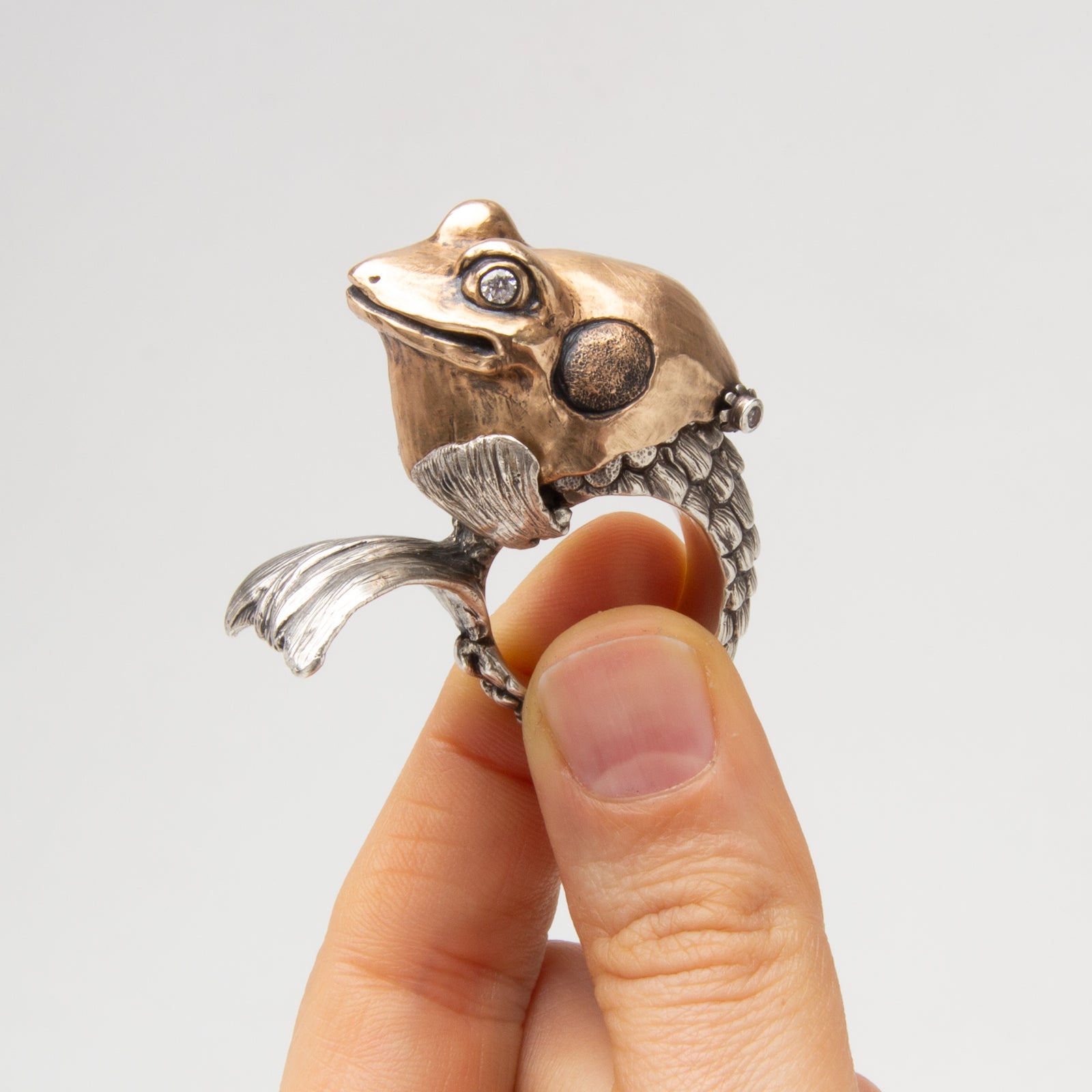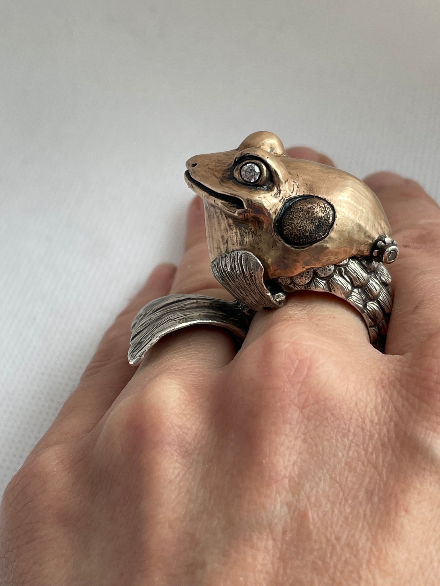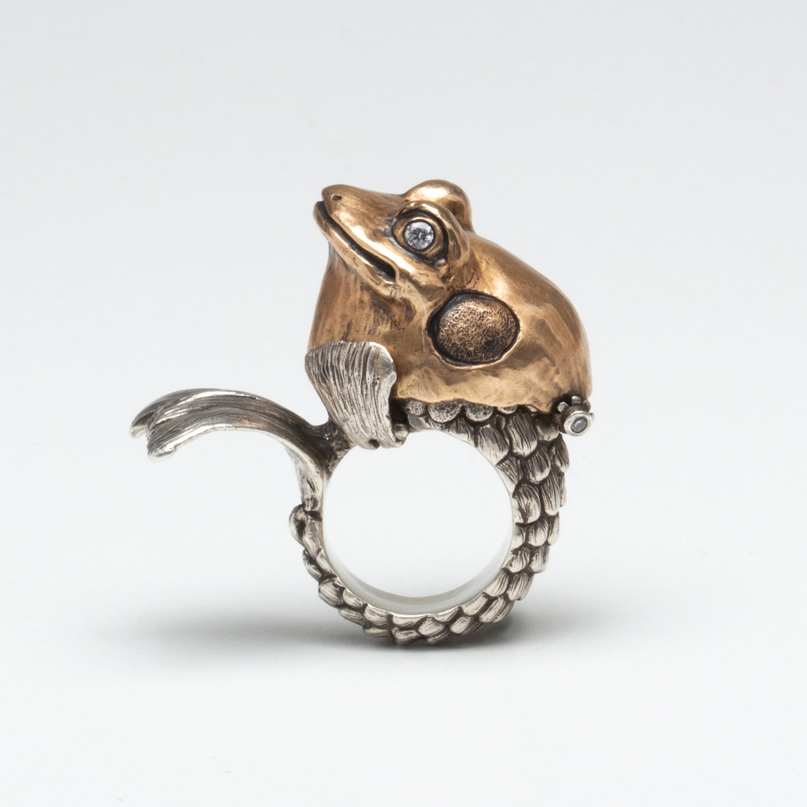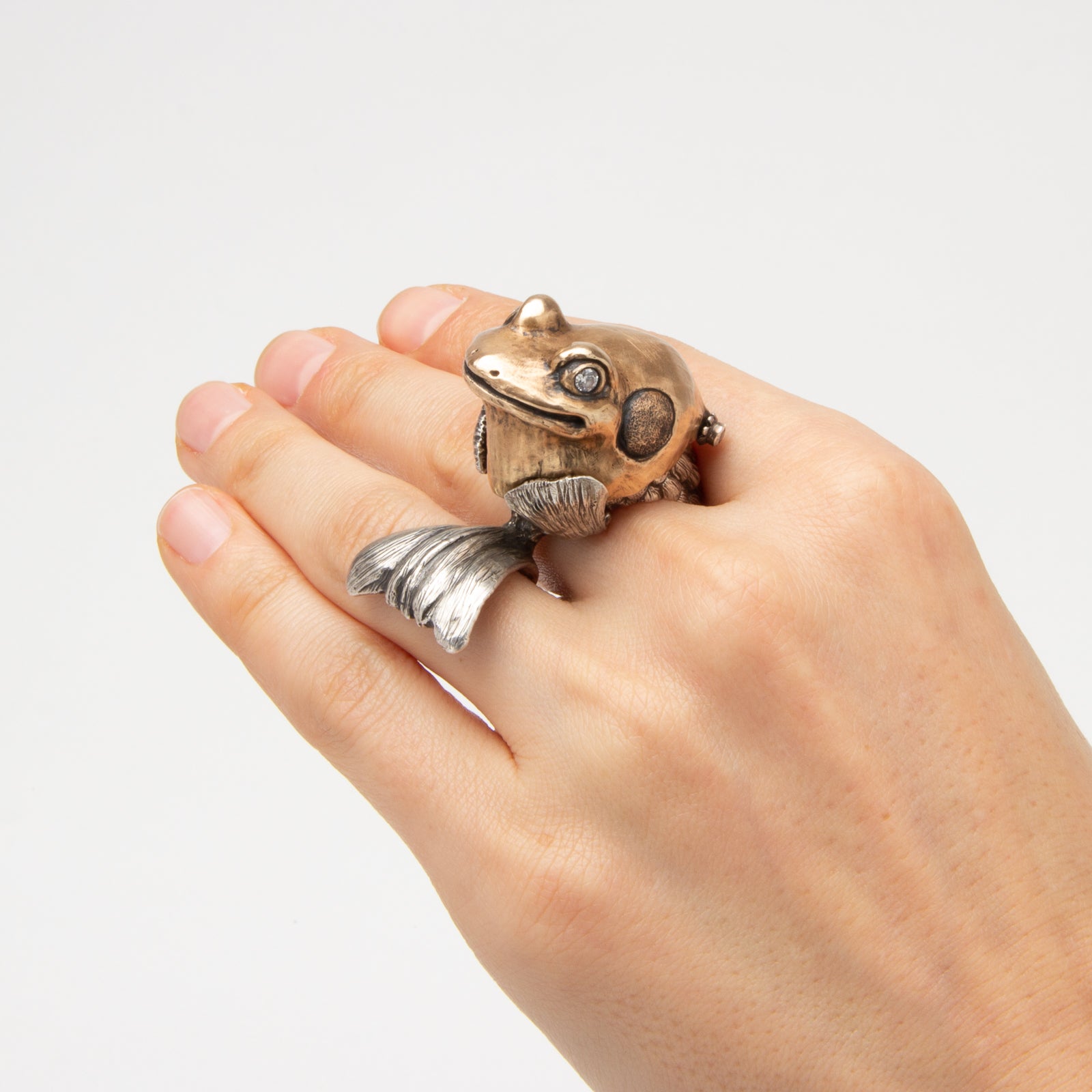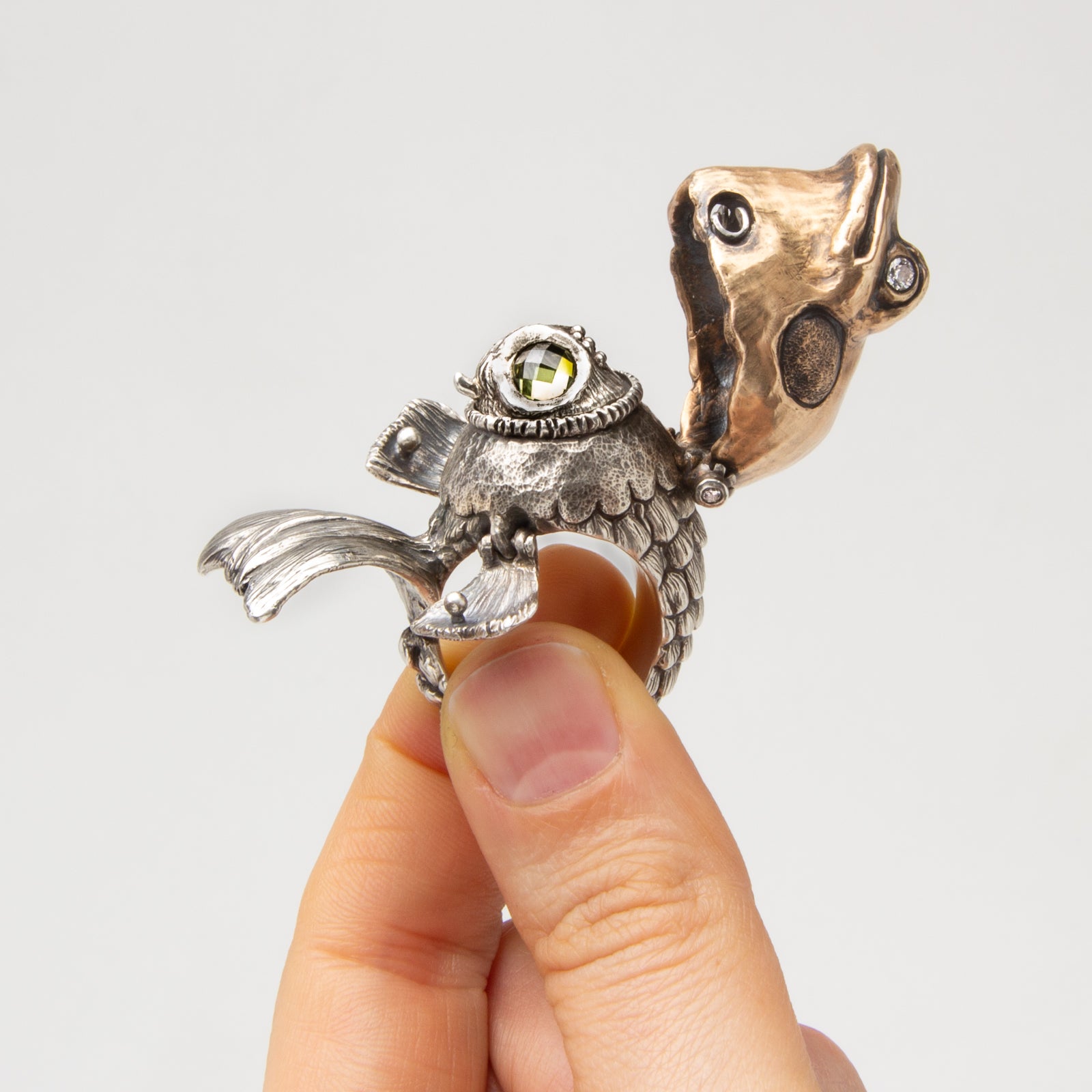 Artist Bio: Based in Western New York State, Kate Caswell specializes in wax carving and lost wax casting. Graduating with a BFA in metals at RIT’s School for American Crafts, she spent many years traveling and working in the production jewelry industry. Kate has made a name for herself with her unique forms, crafting “wearable art” with a tongue-in-cheek attitude and a focus on nature themes.