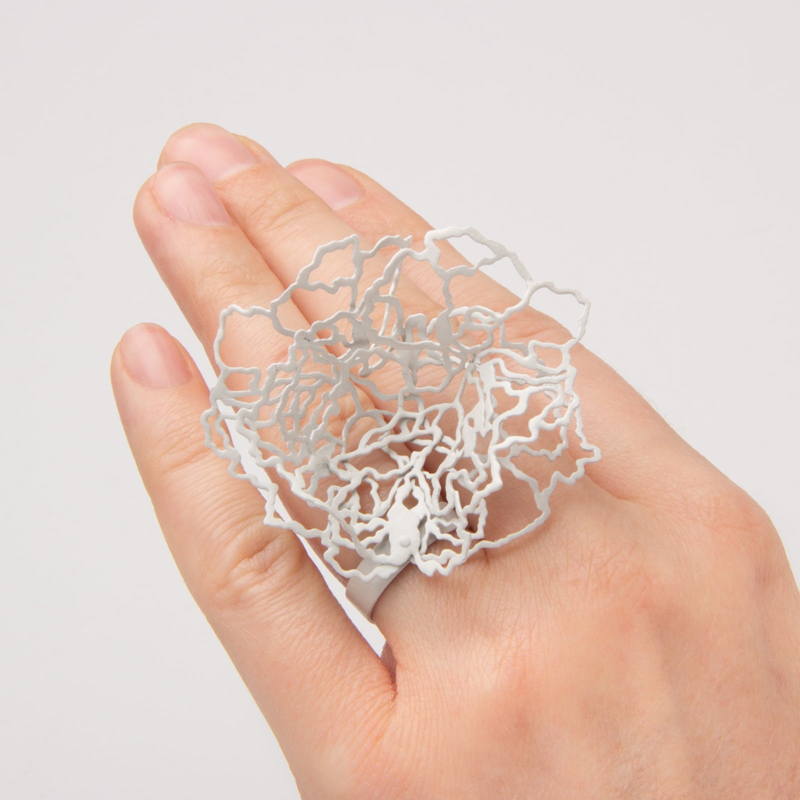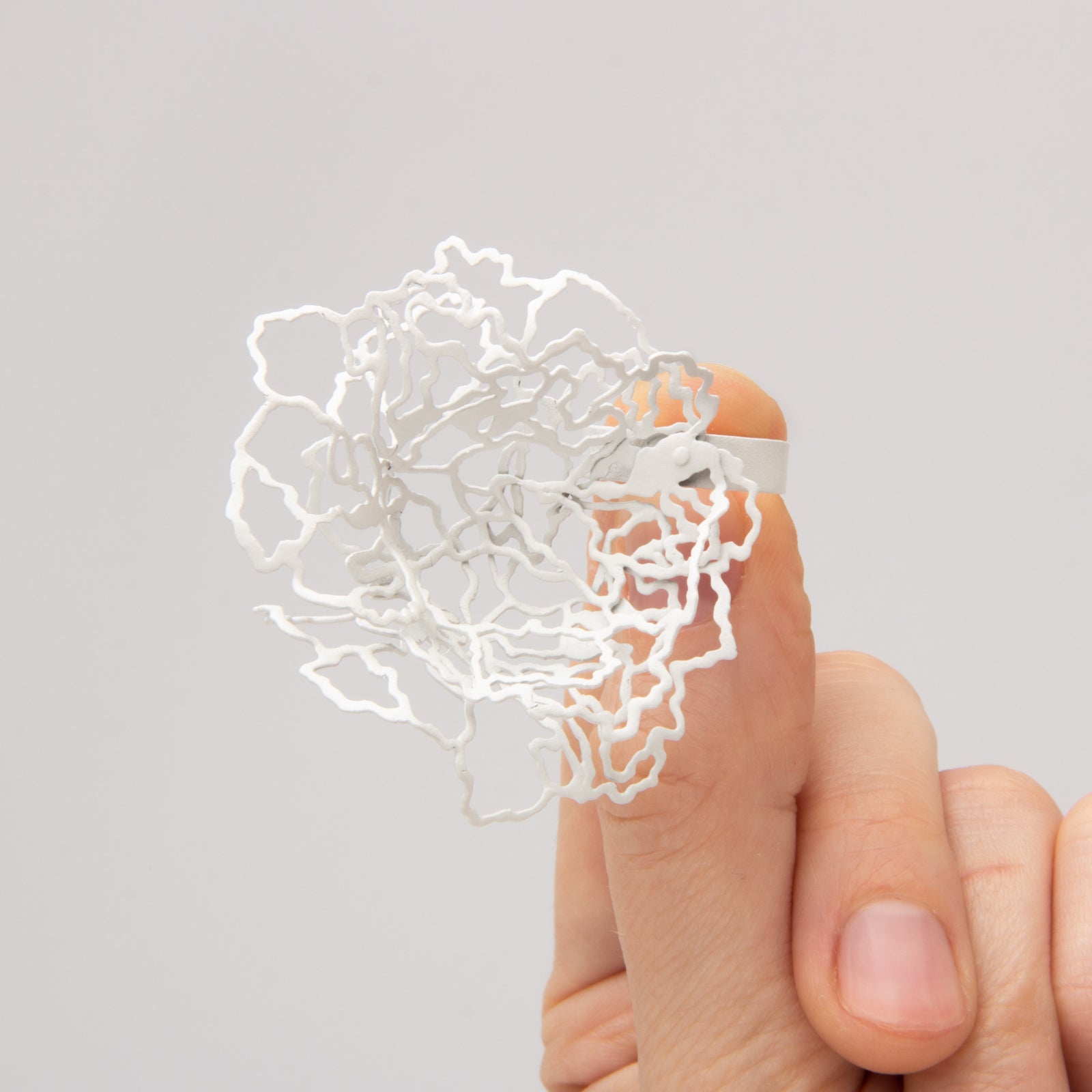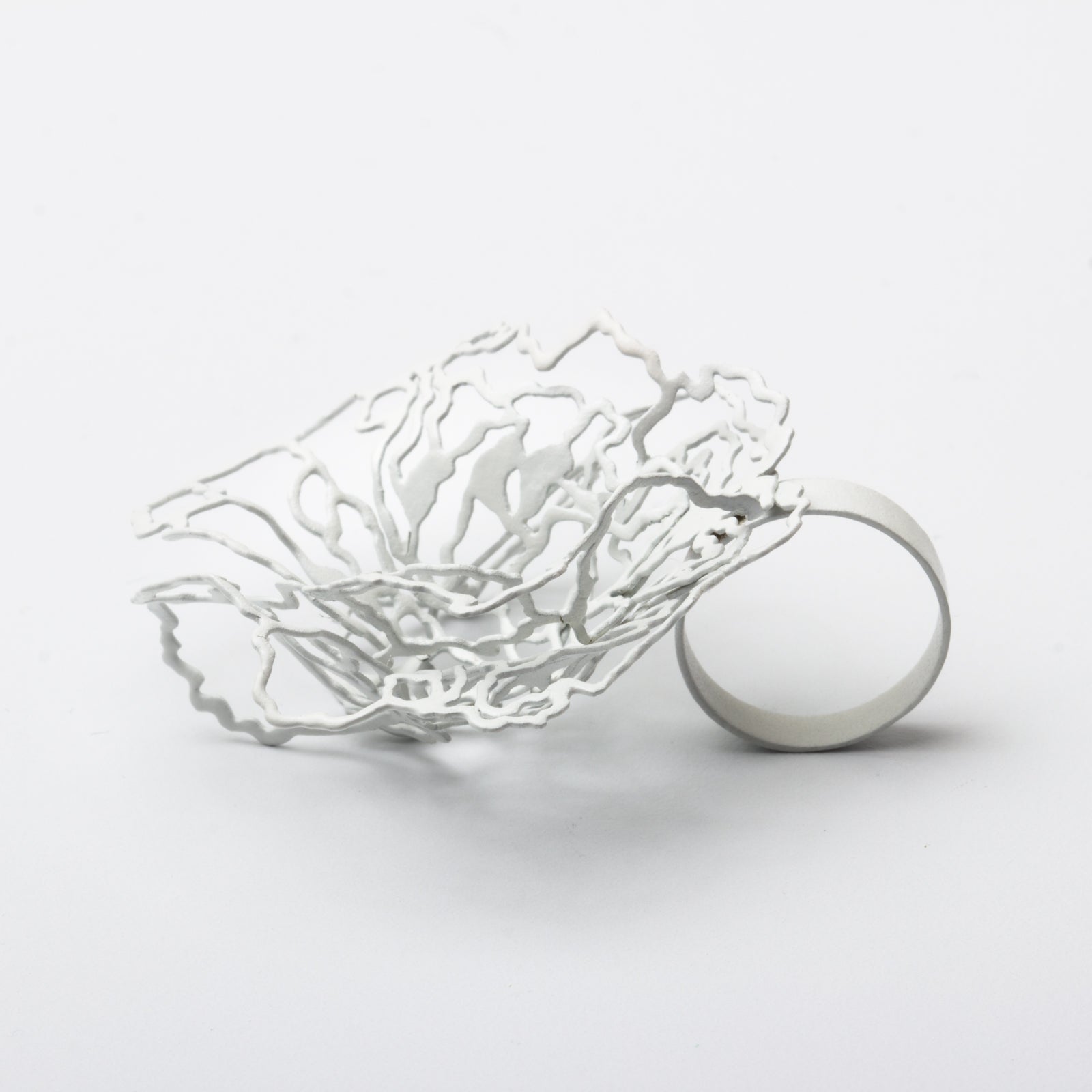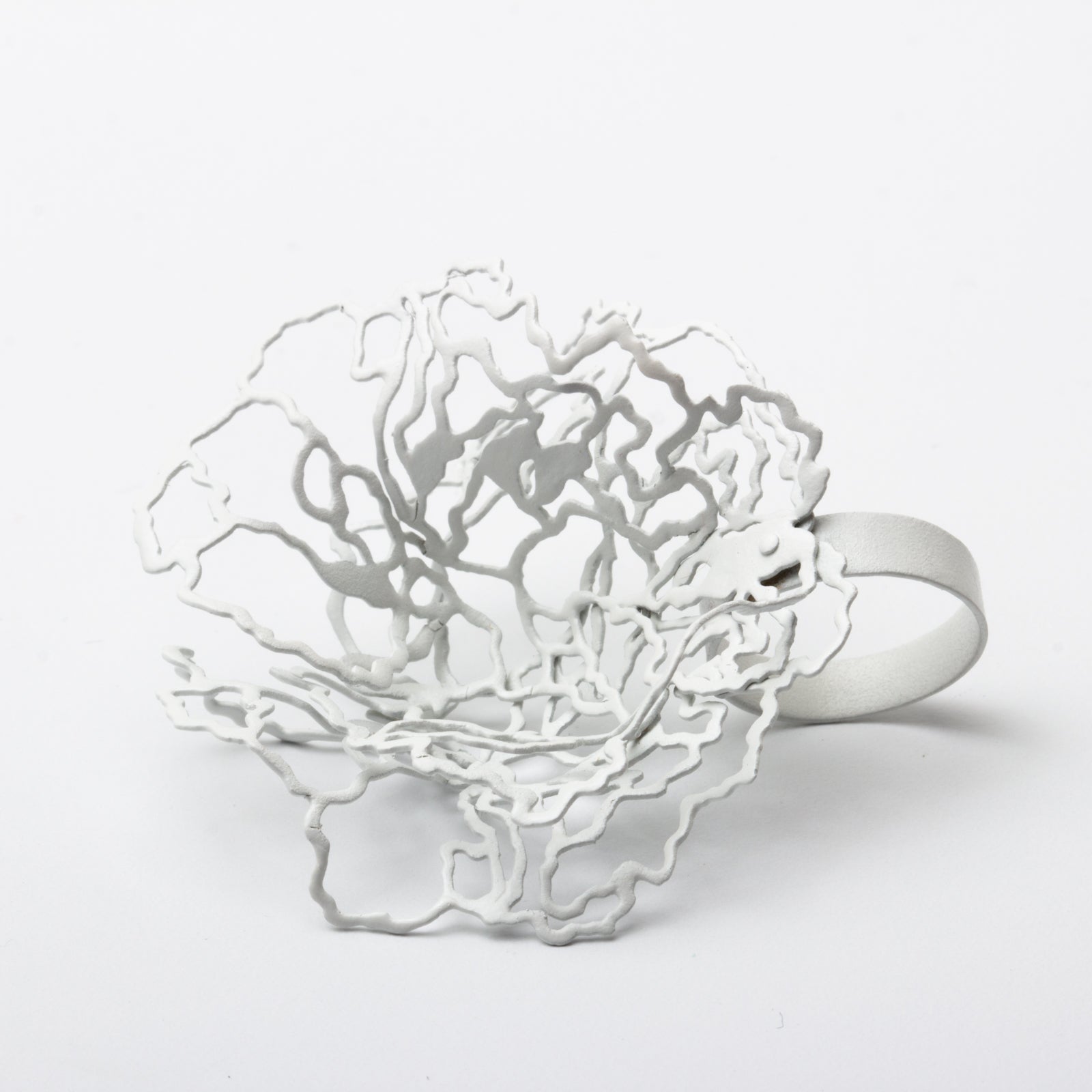 Artist Bio: Rae Jett is a metalsmith based in Portland, me. She earned her BFA in metalsmithing and jewelry design from Maine College of Art in 2018. Combining a love for wood carving with traditional jewelry techniques, her work uses hand pierced elements to present wearable florals that appear to exist on the invisible line between the living and the dead.