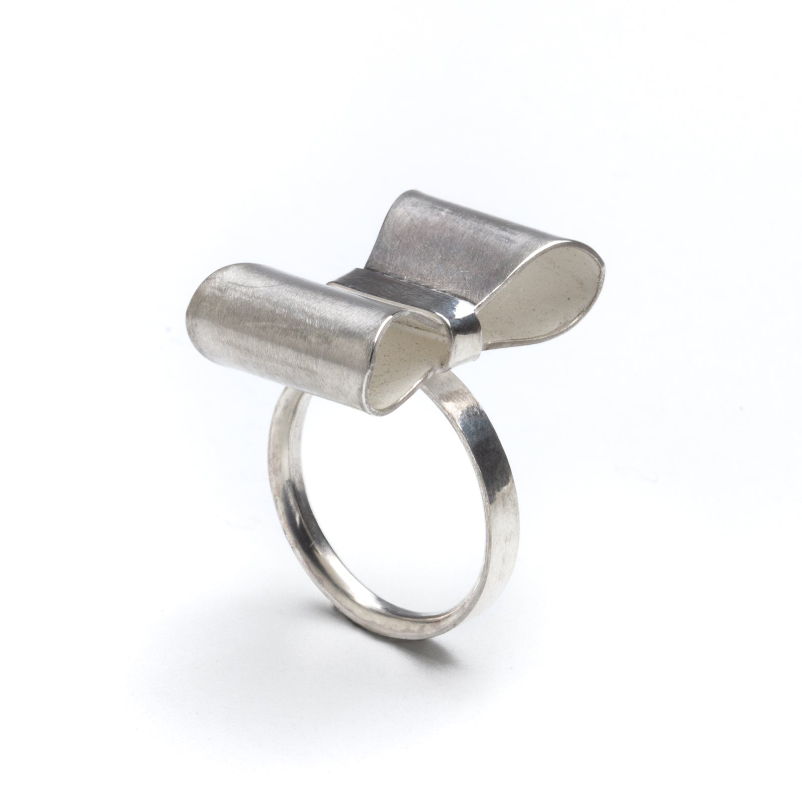 Artist Statement: Bows, and knots in general, are ancient symbols of strength, unions, ties that bind, but also of loyalty and beauty. Here I have updated the classic bowknot by making it a real statement and placing it at a right angle from the ring shank for a very Couture look. I have also played with the matte vs shiny textures to add extra dimension and create a visually very graphic and impactful result. Minimalism isn’t your cup of tea. Instead you like a bit of drama. Perhaps you even wish you were a 1980s child to relive its exuberance and daring attitude? Then this statement cocktail ring is made for you! It will become your go-to cocktail ring when you want to inject style to any outfit instantly. Fabulous on the ring finger, the middle finger or the index finger - that's your choice. It is a unique piece that I have made entirely by hand from sustainably sourced sterling silver 925. It is part of a wider collection that I have called 'Strength'.