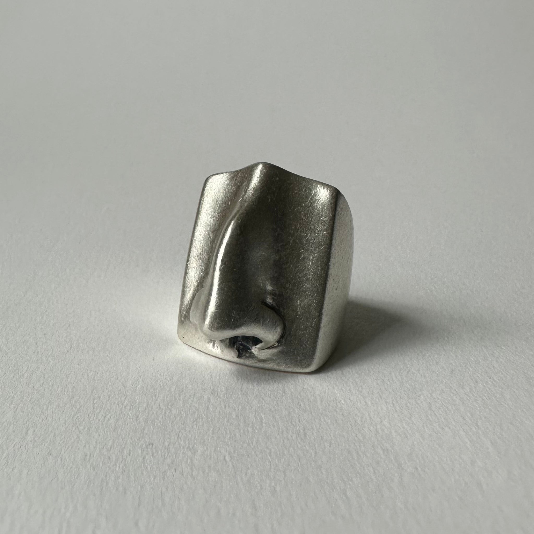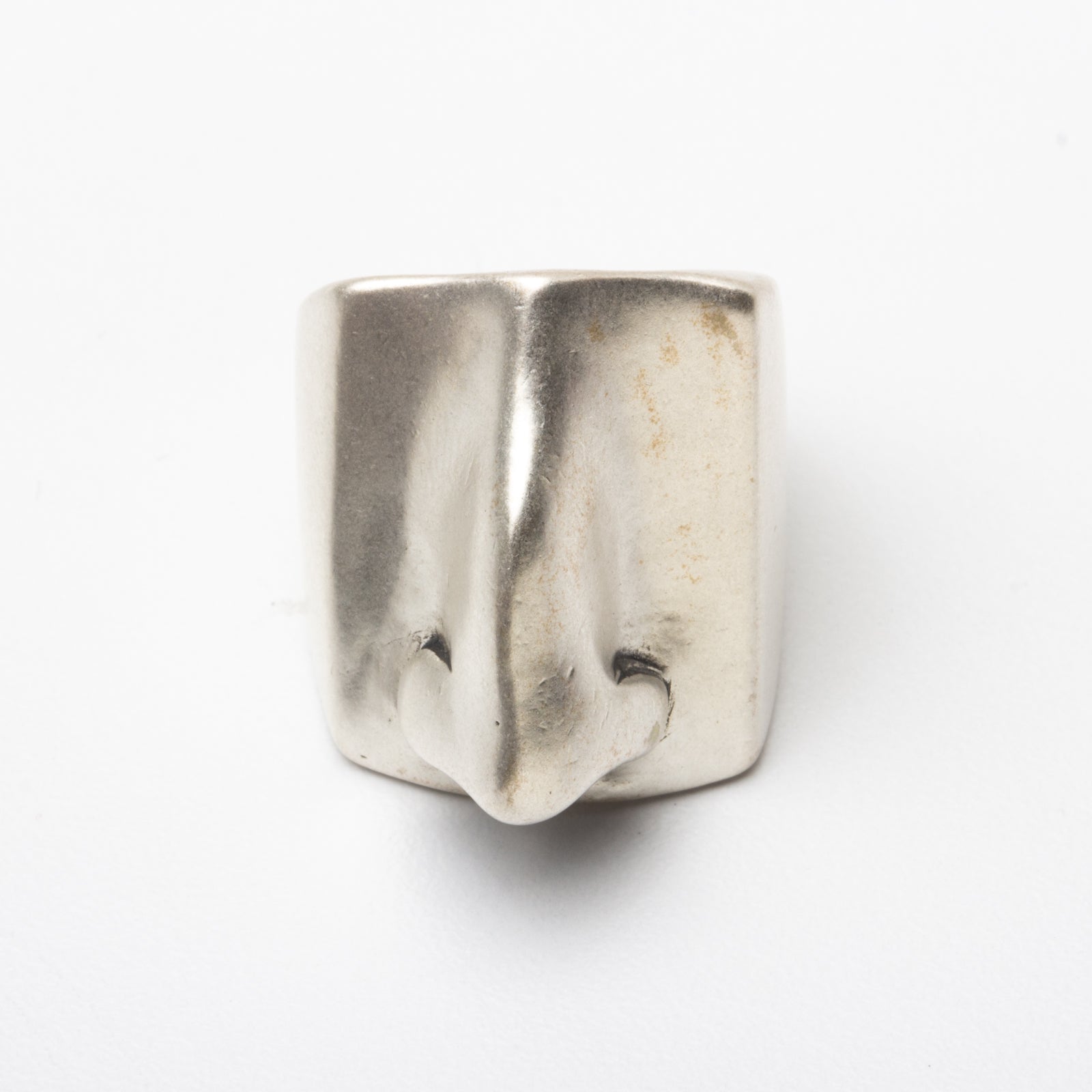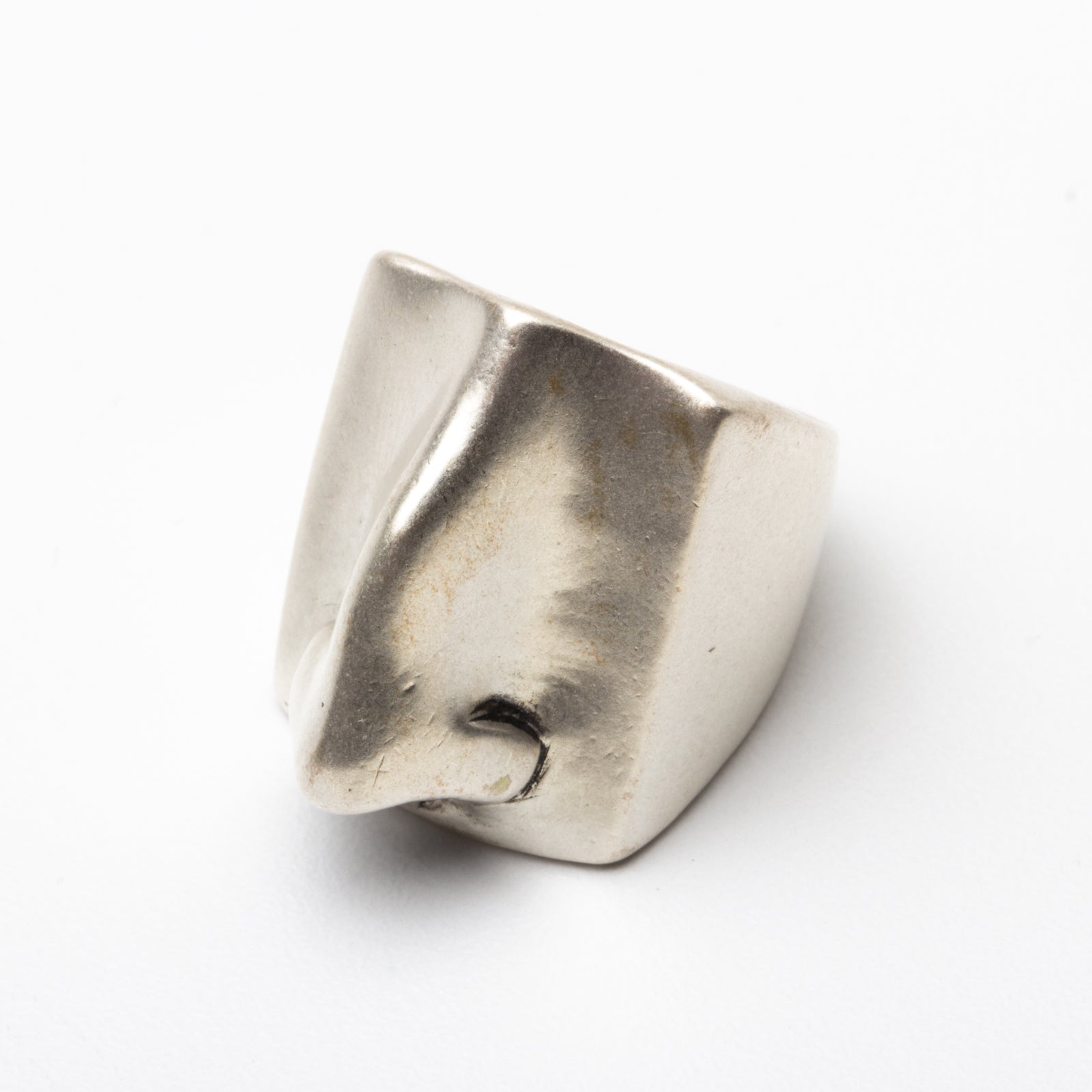 Artist Statement: This ring is modeled after one of my muses Rossy de Palma, a Spanish actress with a prominent nose. She was in many of Pedro Almodovar's movies I used to watch when I was growing up. Probably because I also have a prominent nose I have been fascinated by women and men who were lucky enough to be born with sculptures on their noses. This ring is the first of a series I will be working on where I portray people's noses. My focus will be the bigger and more sculptural the better.