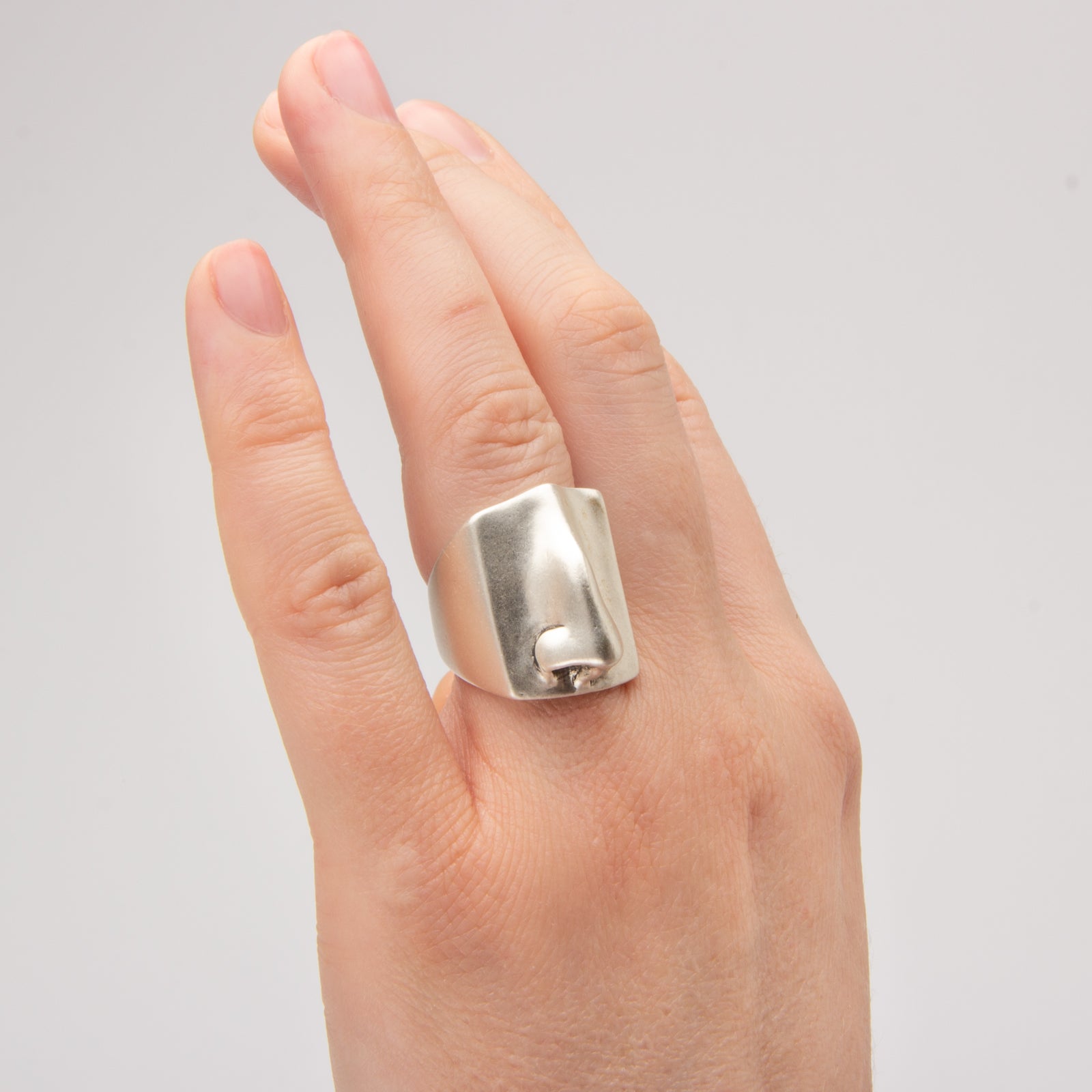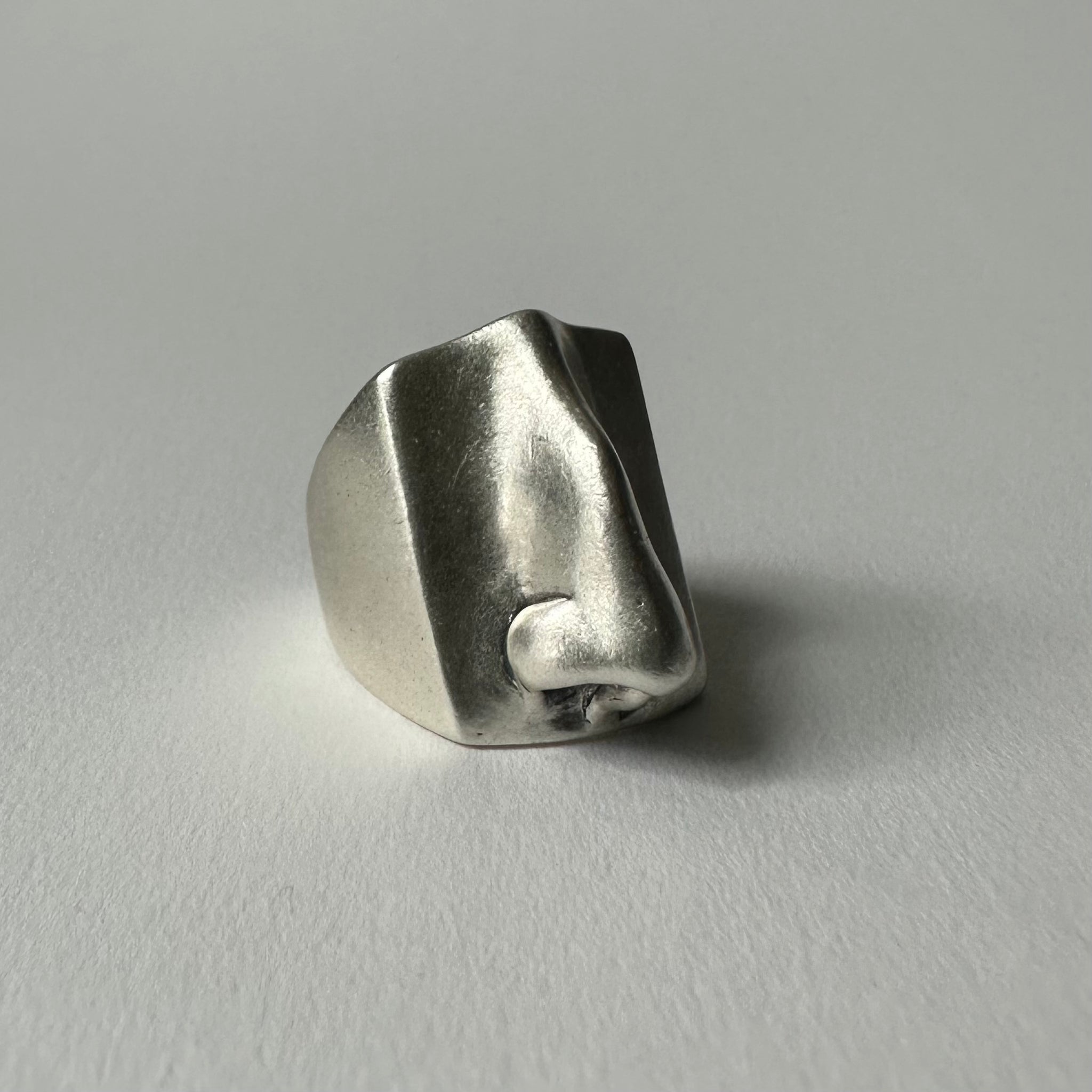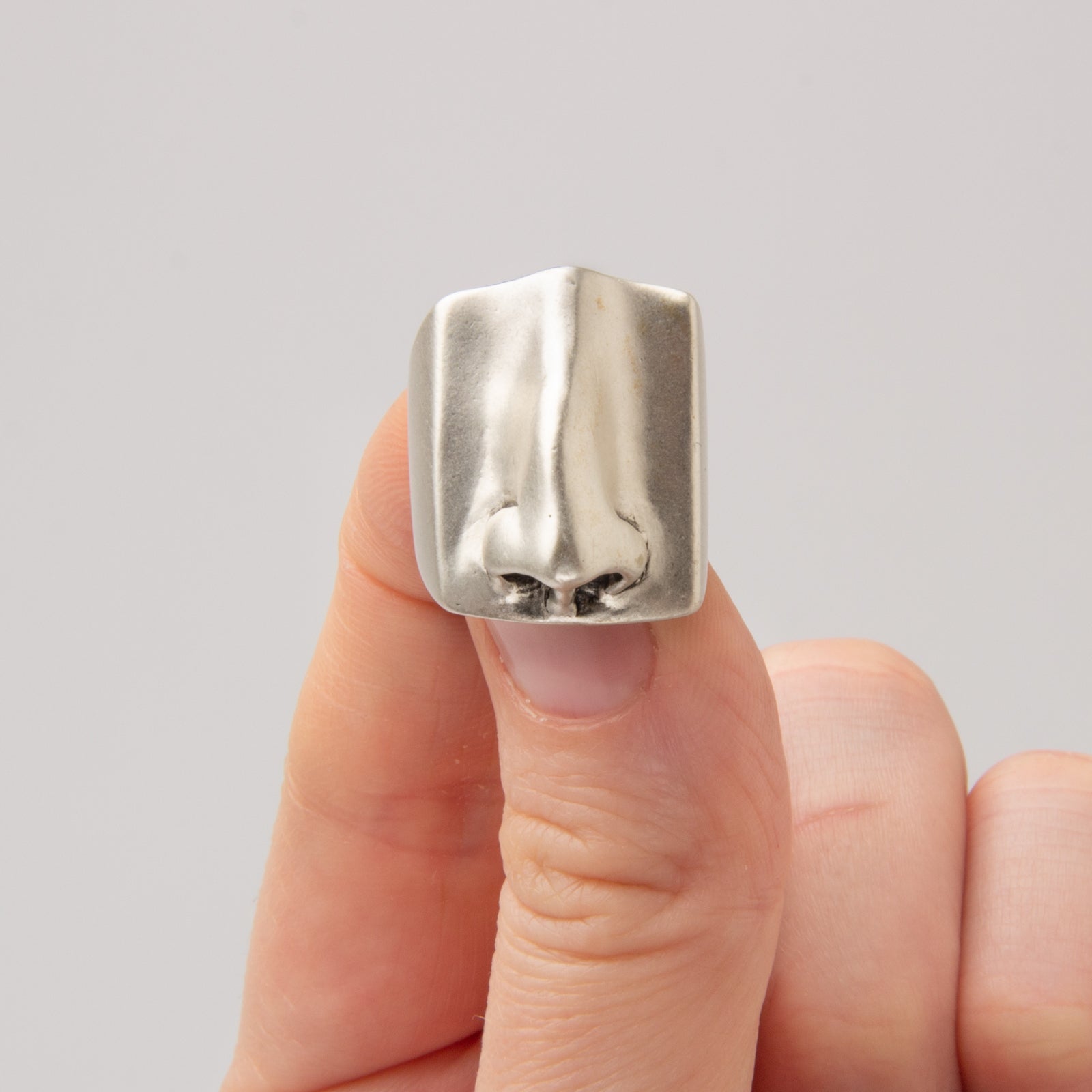 Artist Statement: This ring is modeled after one of my muses Rossy de Palma, a Spanish actress with a prominent nose. She was in many of Pedro Almodovar's movies I used to watch when I was growing up. Probably because I also have a prominent nose I have been fascinated by women and men who were lucky enough to be born with sculptures on their noses. This ring is the first of a series I will be working on where I portray people's noses. My focus will be the bigger and more sculptural the better.