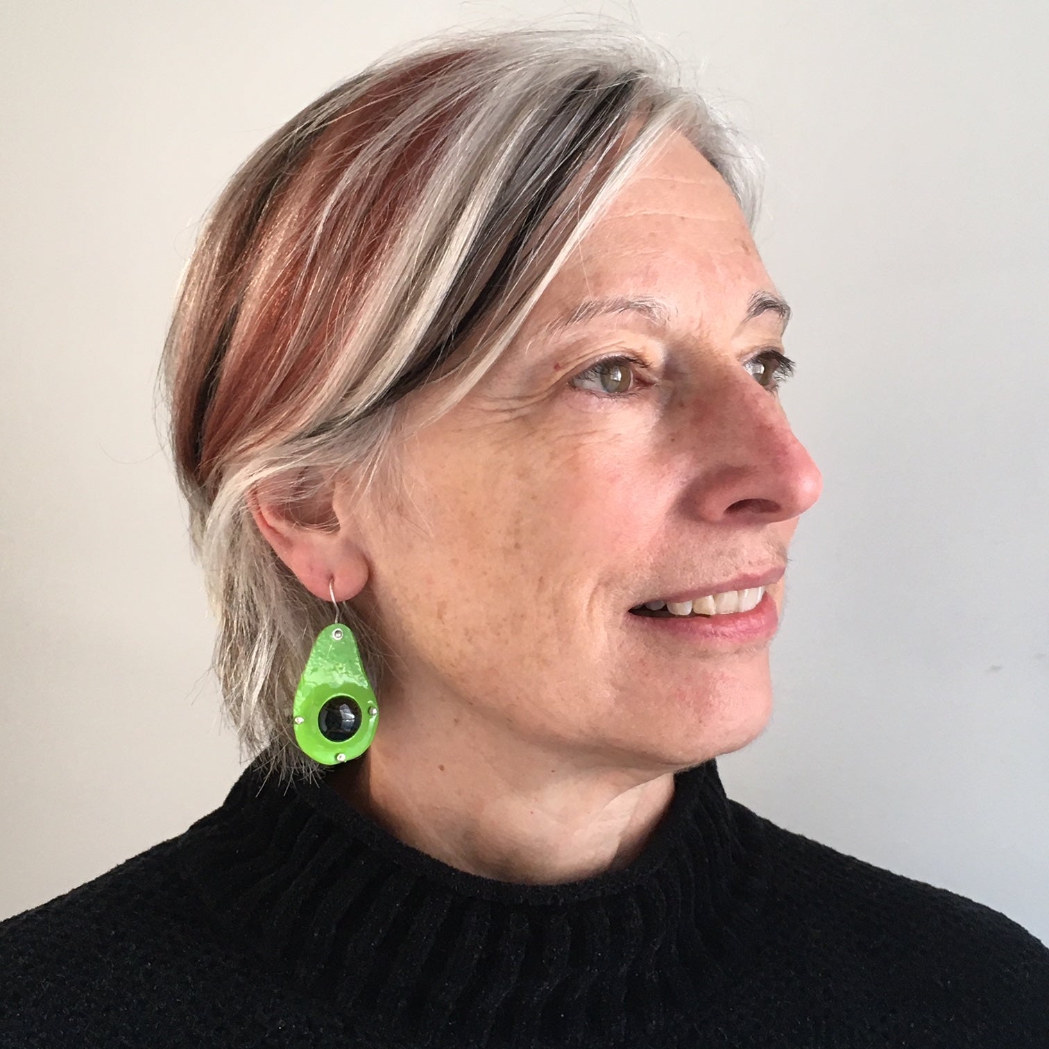 Artist Statement: I love avocado. Finding a small, creamy morsel in my salad is like finding a nugget of gold! This piece was inspired by Andy Cooperman's Creative Captures class. The Tigers Eye stone is trapped between two thin pieces of copper that are riveted together. The back was textured and oxidized. The front was powder coated green. In addition to being grateful for avocado, I am especially grateful for the support and opportunities I have had to study jewelry making at Danaca Design, especially during COVID. This unique studio has helped me to keep my sanity over the last year and a half.