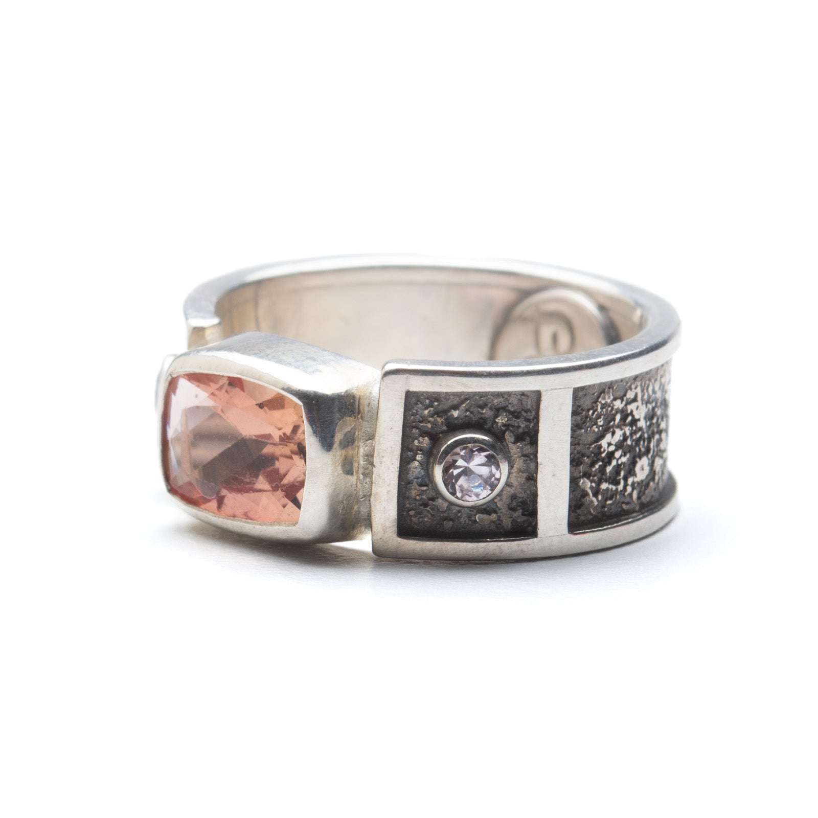 Sweet ring with rectangle Andasine center stone, accented with white sapphires.