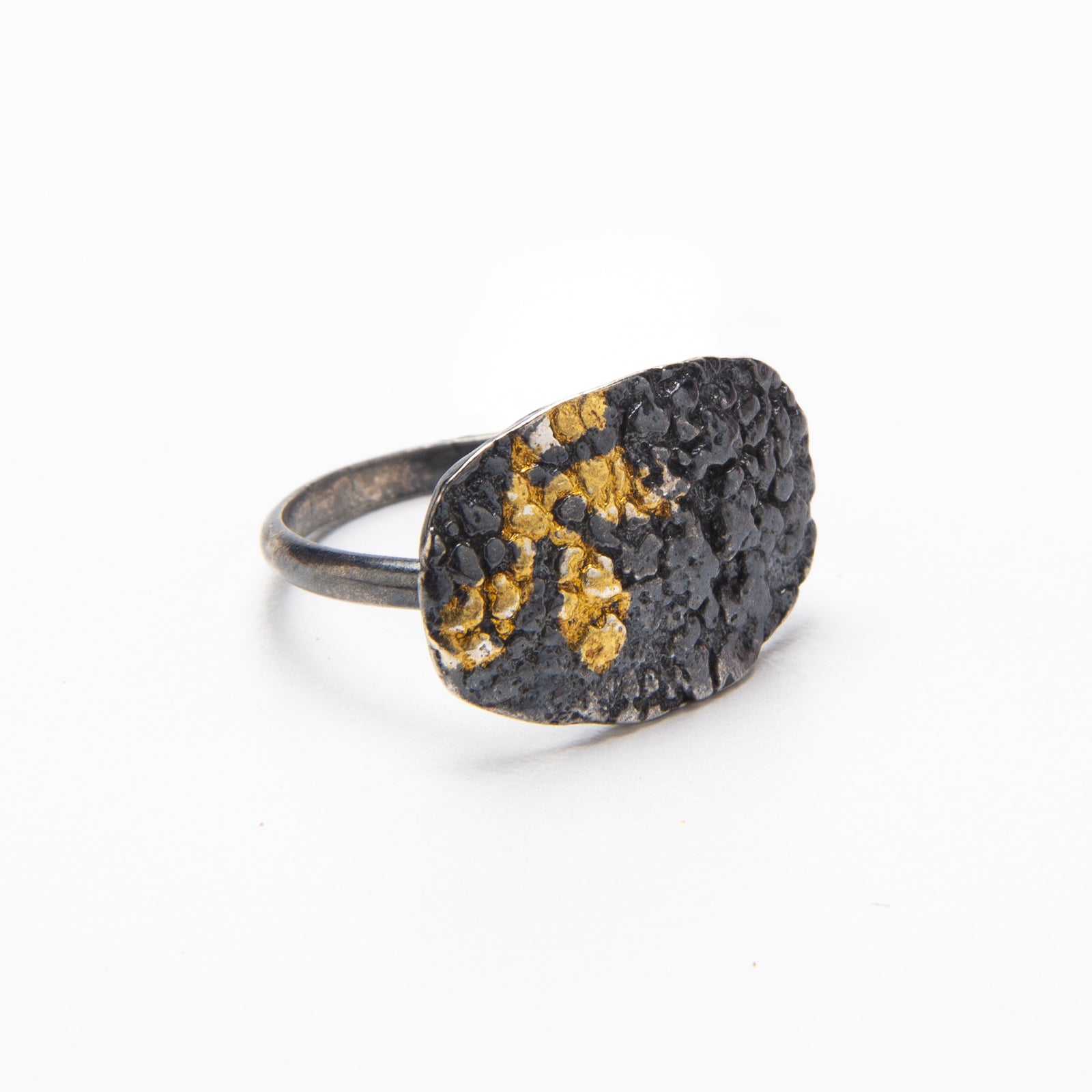 This ring, with its heavy texture and the impression of a delicate gold flower using the ancient Keum boo technique.