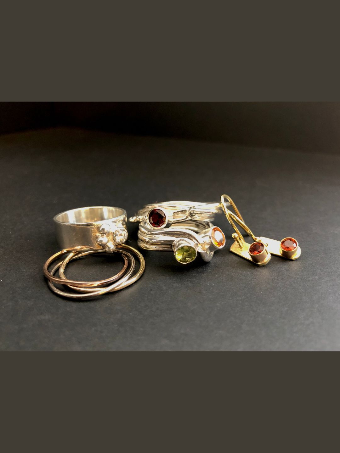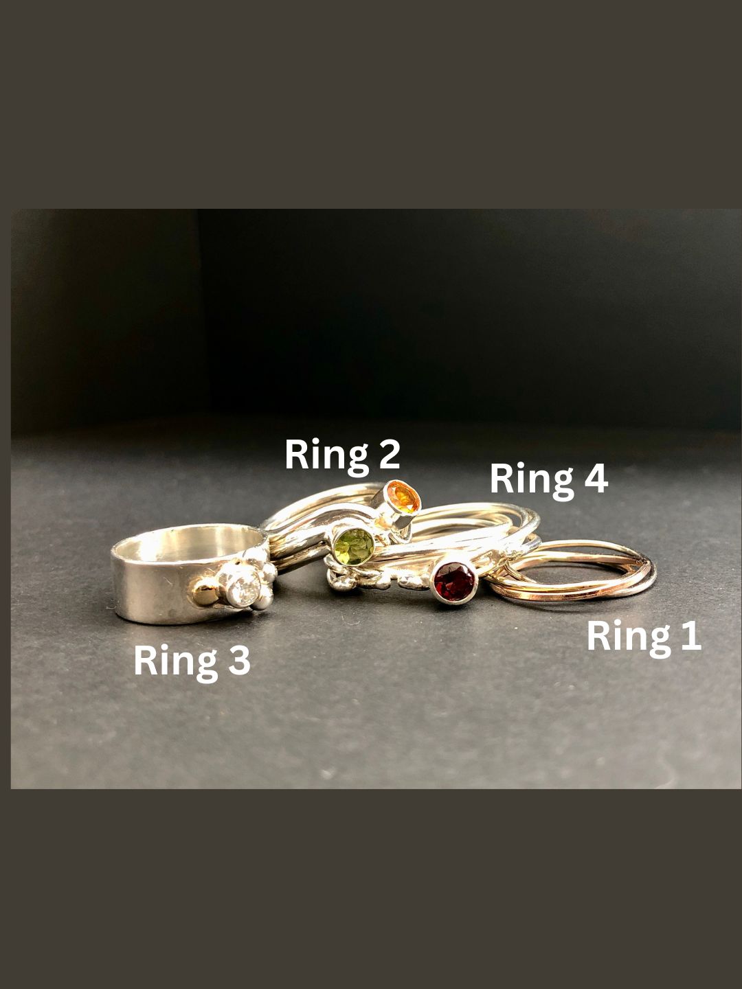 3. Ring 2: Double setting in Sterling with a Citrine and Peridot, size 7