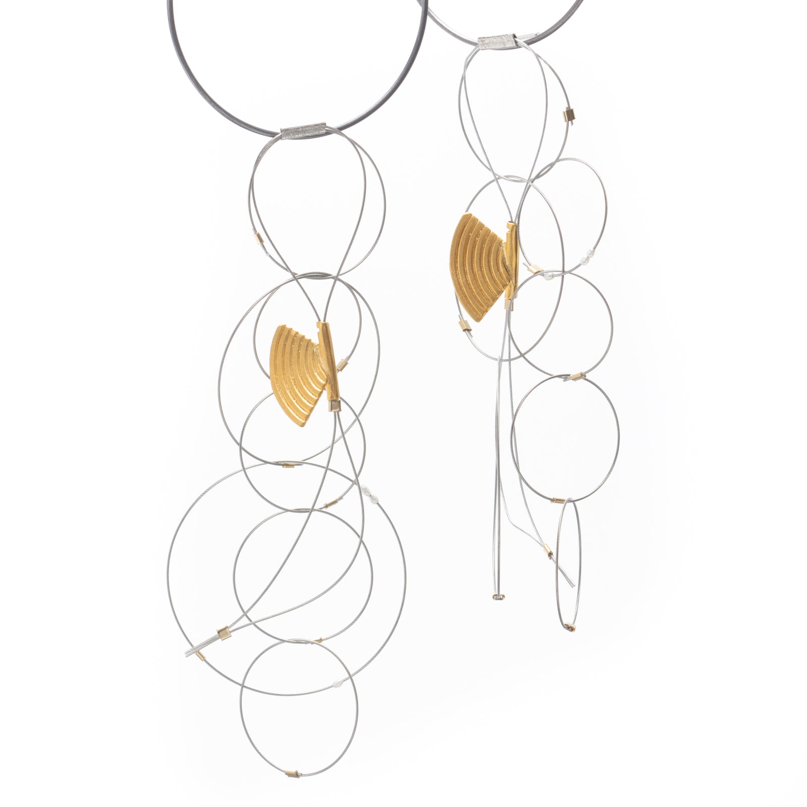 Materials: Sterling Silver, steel wire, heavy gold plated 24k elements