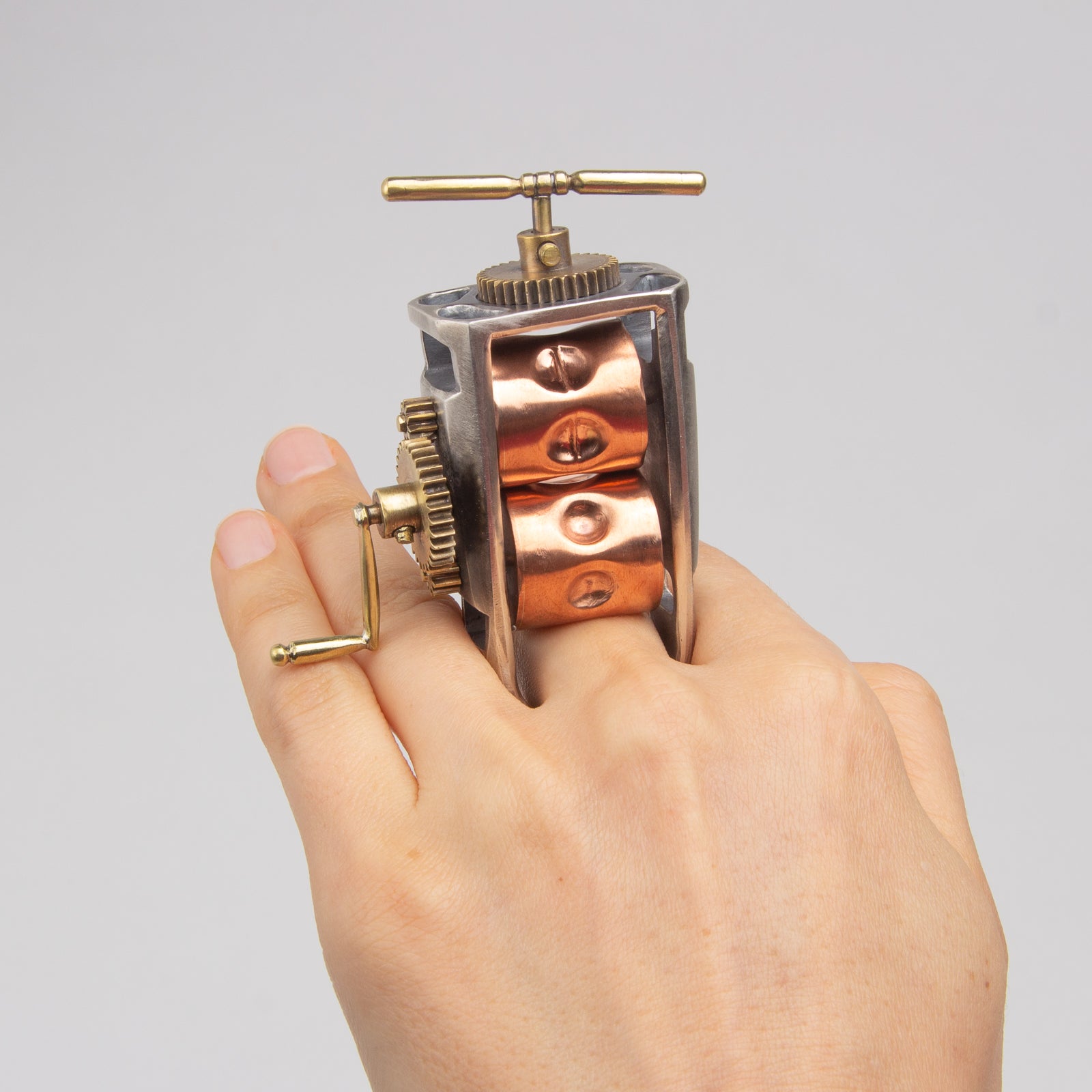 Technical Process Info: This ring is a mixture of lost wax casting and fabrication to create a Pill Crusher for the new age.